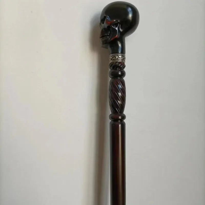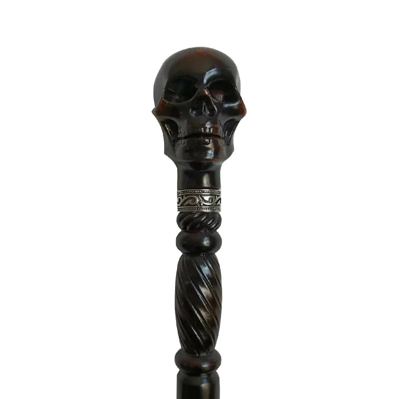 Gothic Spazierstock mit Totenkopf aus Schwarznuss-Holz