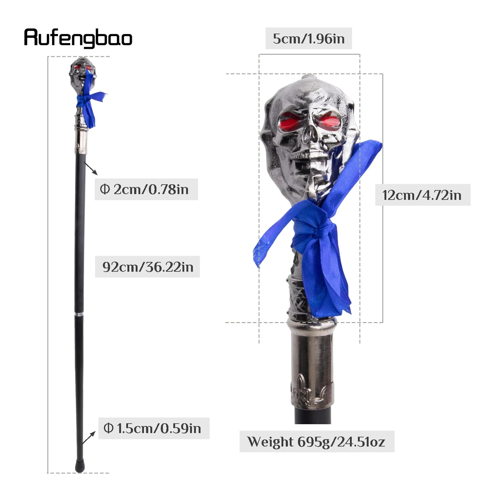 - Auffälliges Design: Der silberne Totenkopf-Knauf mit rotem Auge sorgt für ein unvergessliches Gothic Flair.
