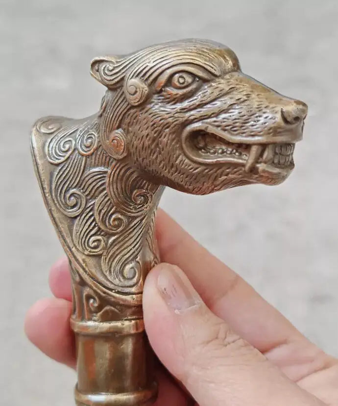 - Einzigartiges Design: Ein wilder Tierkopf im Stil eines mystischen Biests verleiht dem Griff eine dramatische Ausstrahlung.