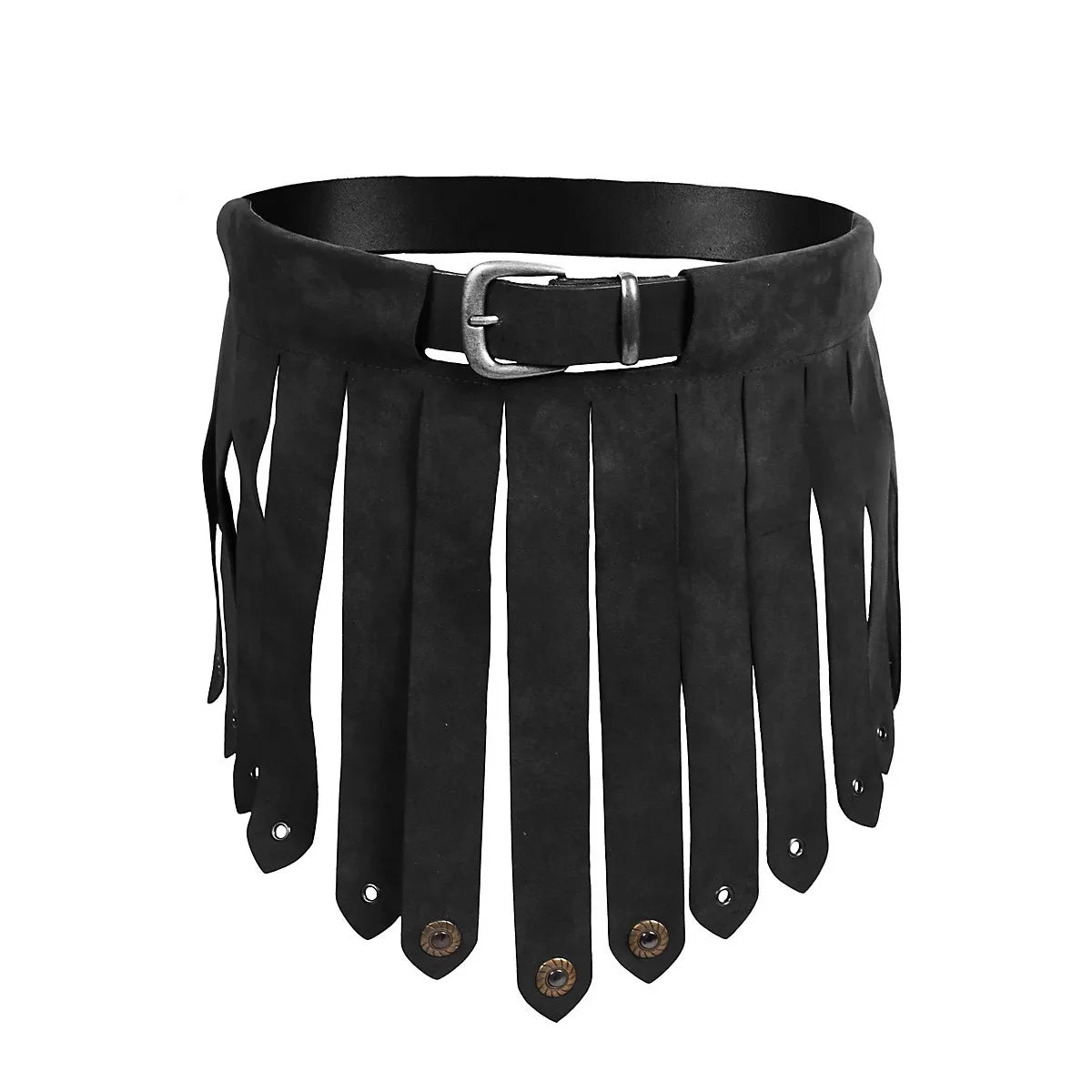 - Schnitt: Klassischer Battle Belt Skirt mit Riemen und dekorativer Nietenverzierung