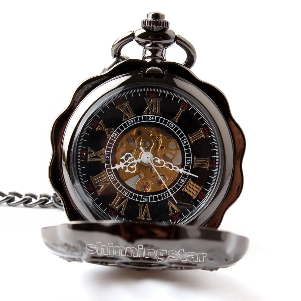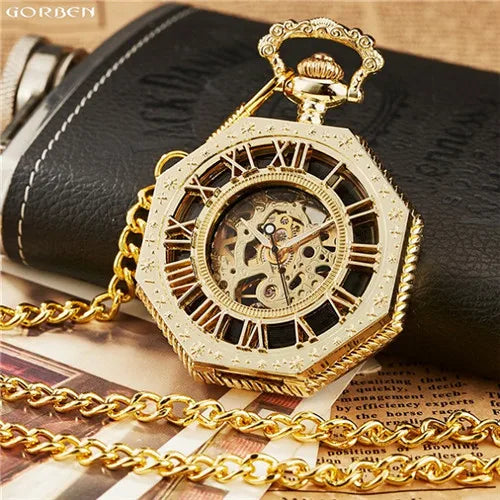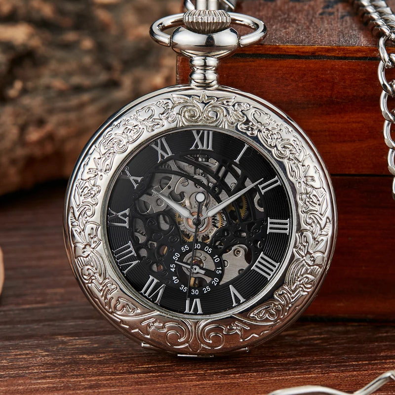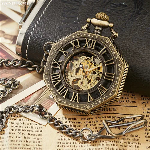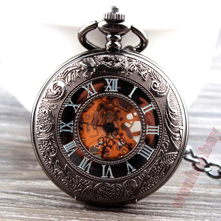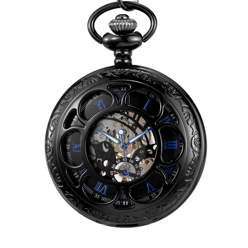 Entdecken Sie unsere Gothic Steampunk Skelettuhr – Leuchtende Taschenuhr, die perfekte Ergänzung für alle, die den Dark Steampunk Look mit einem Hauch viktorianischer Eleganz lieben. Diese mechanische Taschenuhr mit skelettiertem Zifferblatt ist ein wahres Meisterwerk der Uhrmacherkunst und verbindet Stil und Funktion auf eindrucksvolle Weise. Mit ihrem robusten Edelstahlgehäuse und dem leuchtenden Zifferblatt ist diese Uhr nicht nur ein funktionales Accessoire, sondern auch ein Ausdruck Ihrer individuellen Ästhetik.