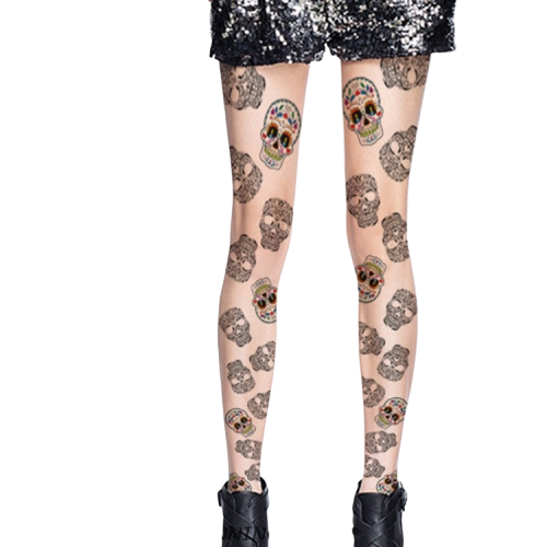 Entdecke die Gothic Strumpfhose im „Tag der Toten“-Design – perfekt für ein auffälliges Outfit mit Stil und faszinierenden Musterdetails!