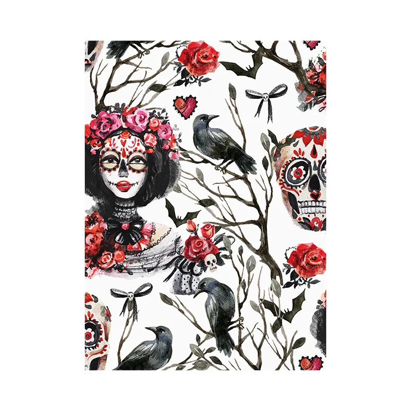 • Design: Florale Sugar Skull Motive mit starkem Schwarz-Weiß-Kontrast im abstrakten Gothic-Stil.