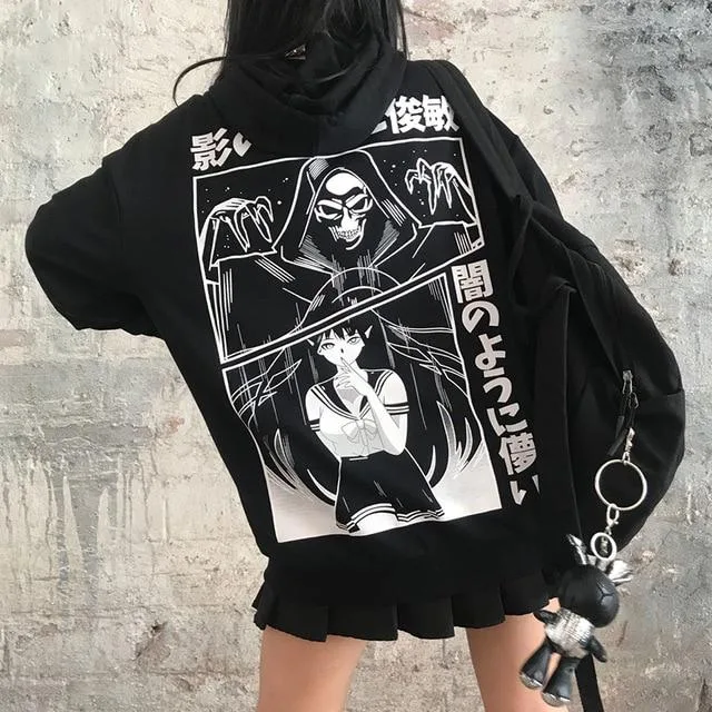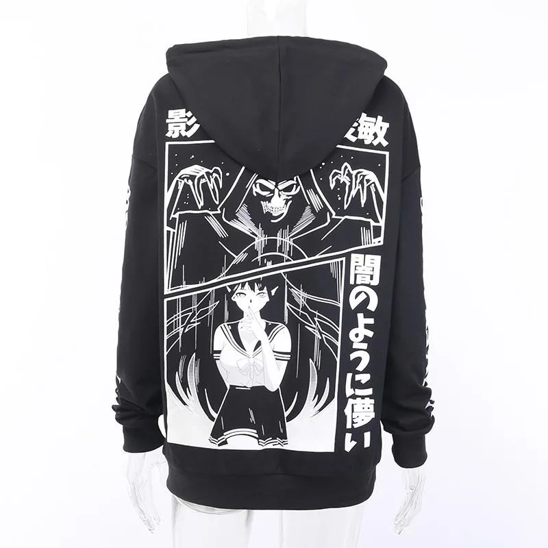 - Design: Schwarzes Sweatshirt mit Grim Reaper-Motiv im Lolita-Stil