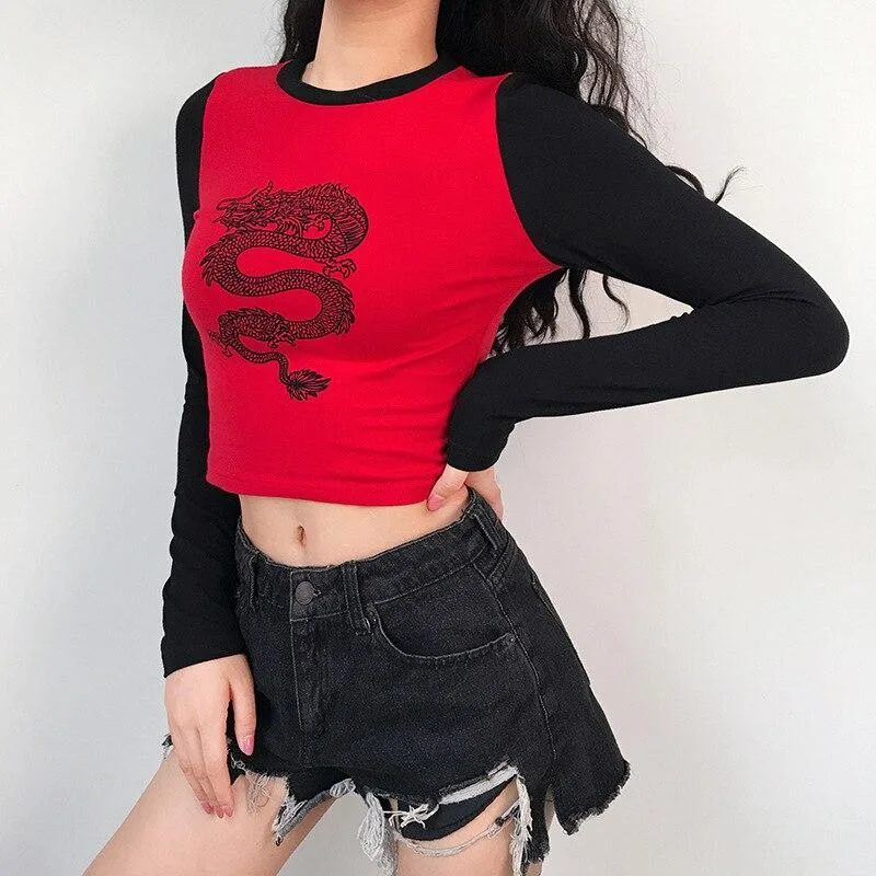 - Design: Langärmliges Gothic-T-Shirt mit Detaildruck im Drachenmotiv