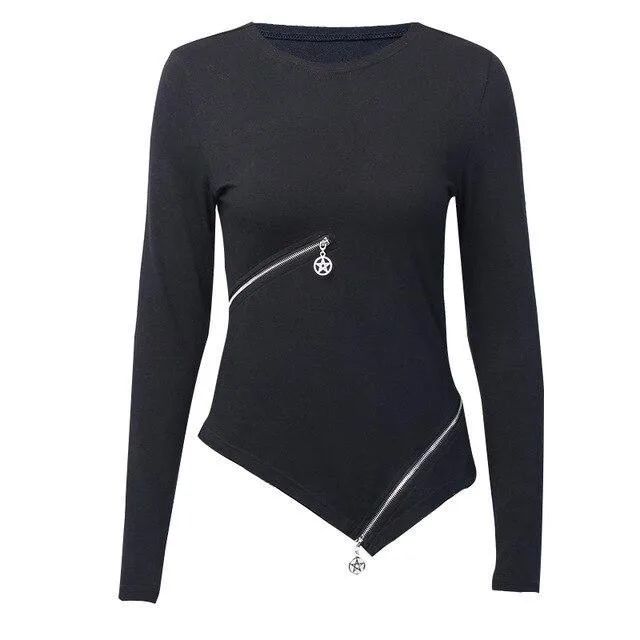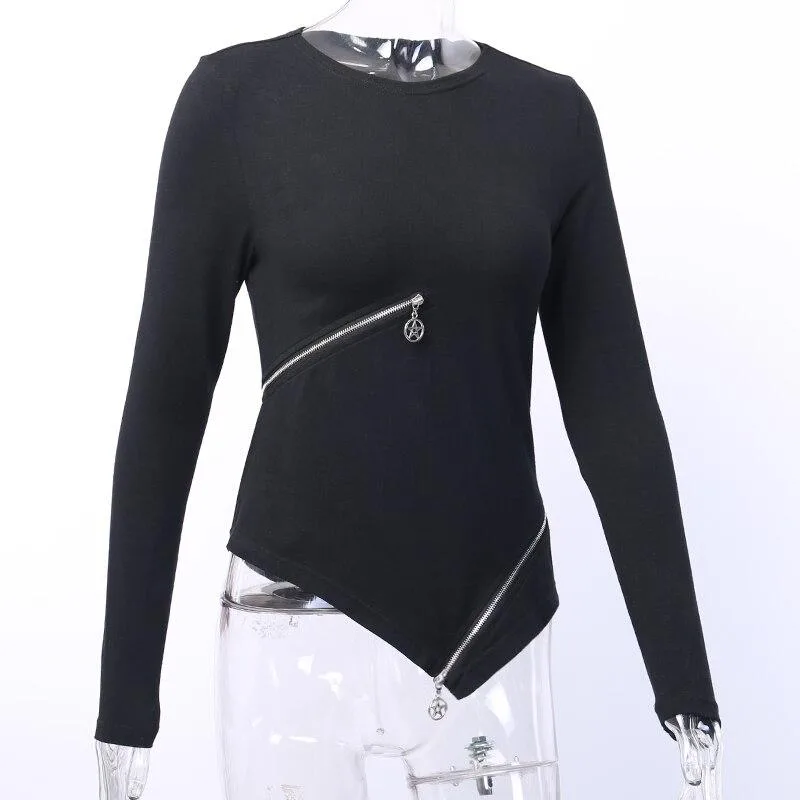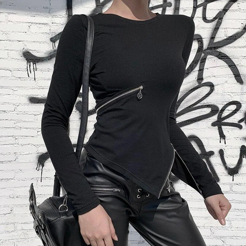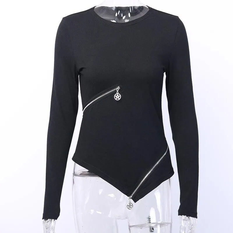 Gothic T Shirt Figurbetonter Reißverschluss