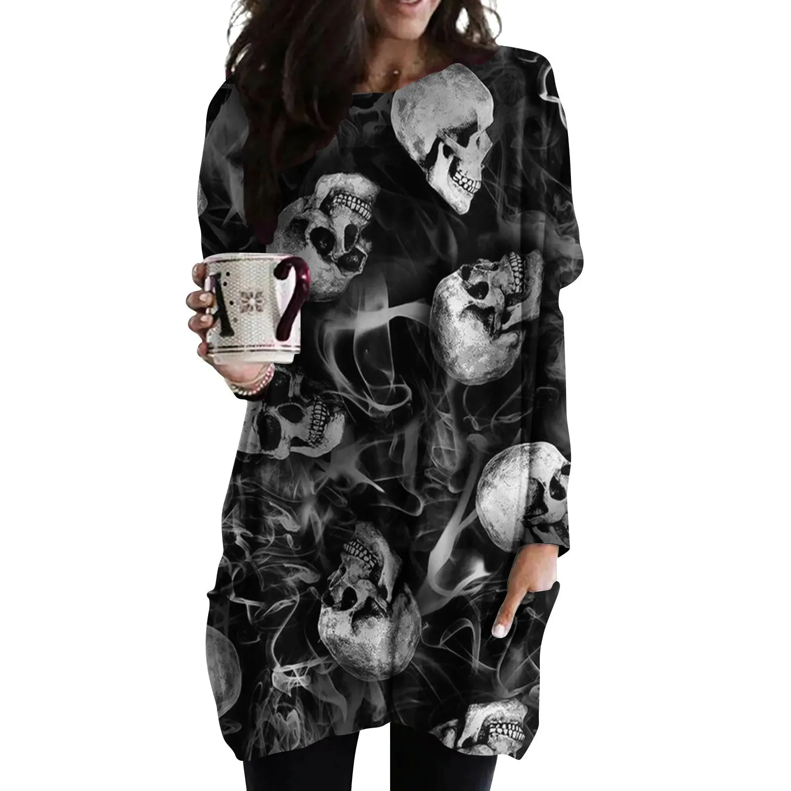 Entdecken Sie unser Gothic T Shirt Kleid, die perfekte Kombination aus lässigem Komfort und dunkler Eleganz. Dieses Kleid mit auffälligem Totenkopf-Print ist ein Must-Have für alle Liebhaber der Gothic-Ästhetik. Mit seinem fließenden Schnitt, hochwertigen Materialien und einem Hauch von Rebellion ist das Gothic T Shirt Kleid ein vielseitiges Kleidungsstück, das gleichermaßen für Alltagslooks und besondere Anlässe geeignet ist.