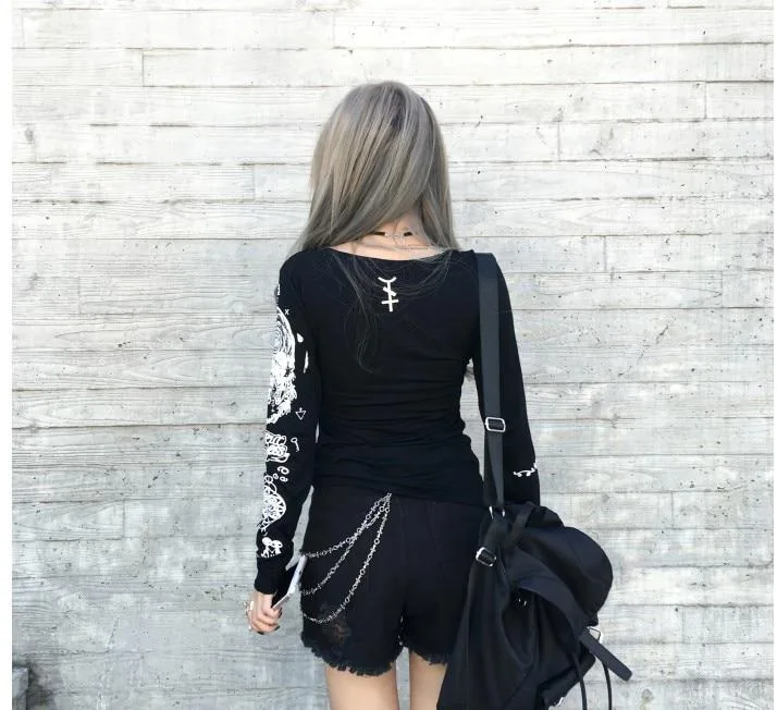 Entdecken Sie unser Gothic T Shirt Lässiger Stil, das perfekte Kleidungsstück für Damen, die den Gothic- und Punk-Look schätzen. Dank seines hochwertigen Designs und der makellosen Verarbeitung bringt dieses Langarm-T-Shirt Raffinesse und Individualität in Ihre Garderobe. Ob für den Alltag oder besondere Anlässe, das Gothic T Shirt Lässiger Stil ist vielseitig, komfortabel und ein echter Hingucker.
