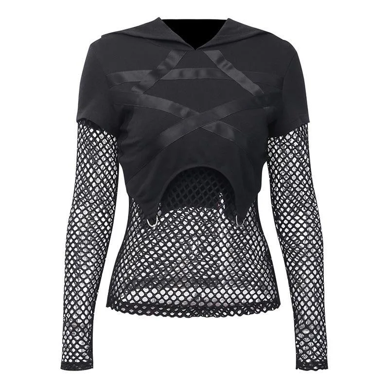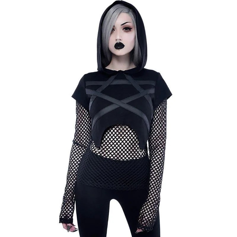 - Ultimativer Gothic-Stil: Die Netzärmel verleihen dem Look einen einzigartigen und rebellischen Touch.