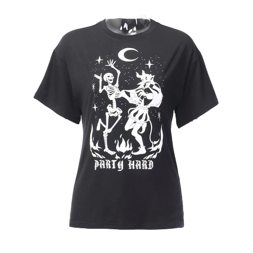 Verpassen Sie nicht die Gelegenheit, Ihre Garderobe mit diesem Gothic T Shirt Party Hard zu bereichern. Der perfekte Mix aus Stil und Komfort – holen Sie es sich noch heute!