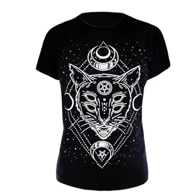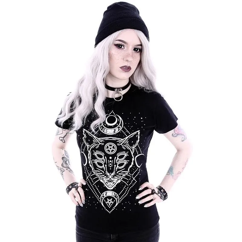 „Entdecke das Gothic T Shirt mit schwarzer Katze – mystischer Stil und bequemer Schnitt für Katzenliebhaber und Fans düsterer Mode!“