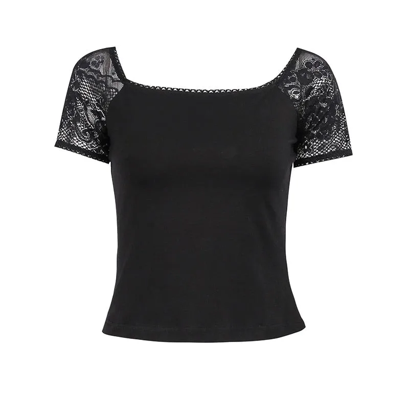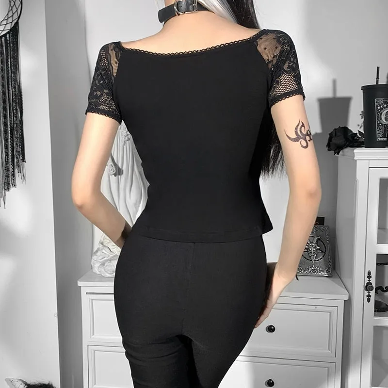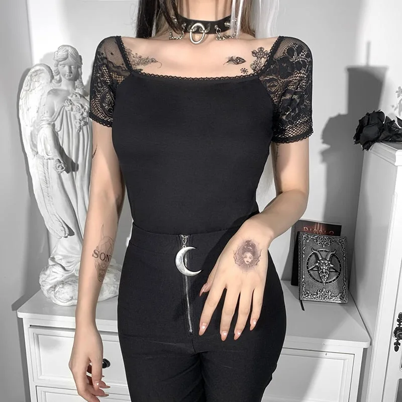 Gothic T Shirt Spitzenärmel