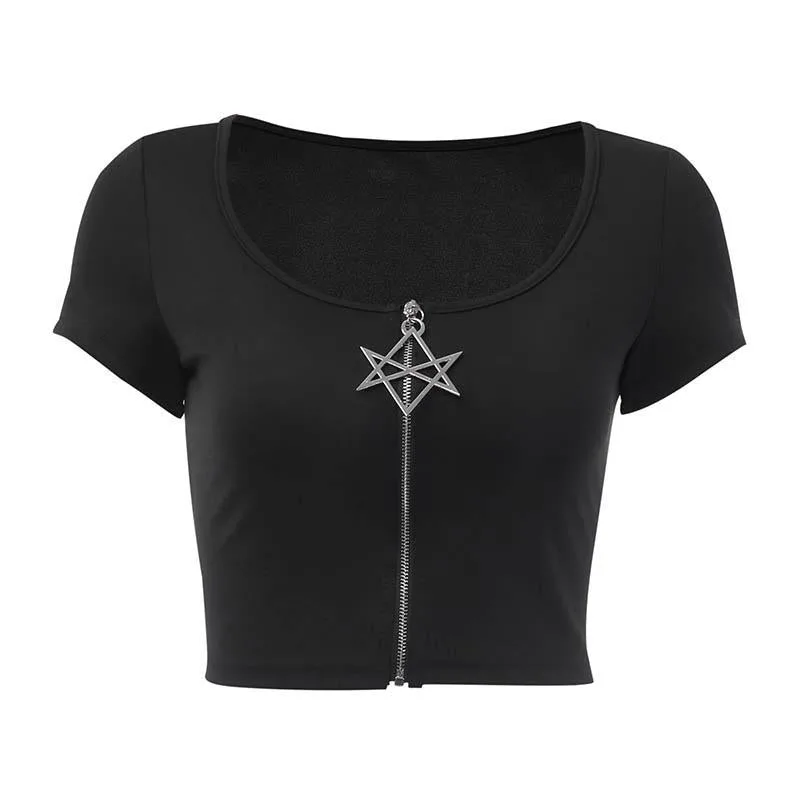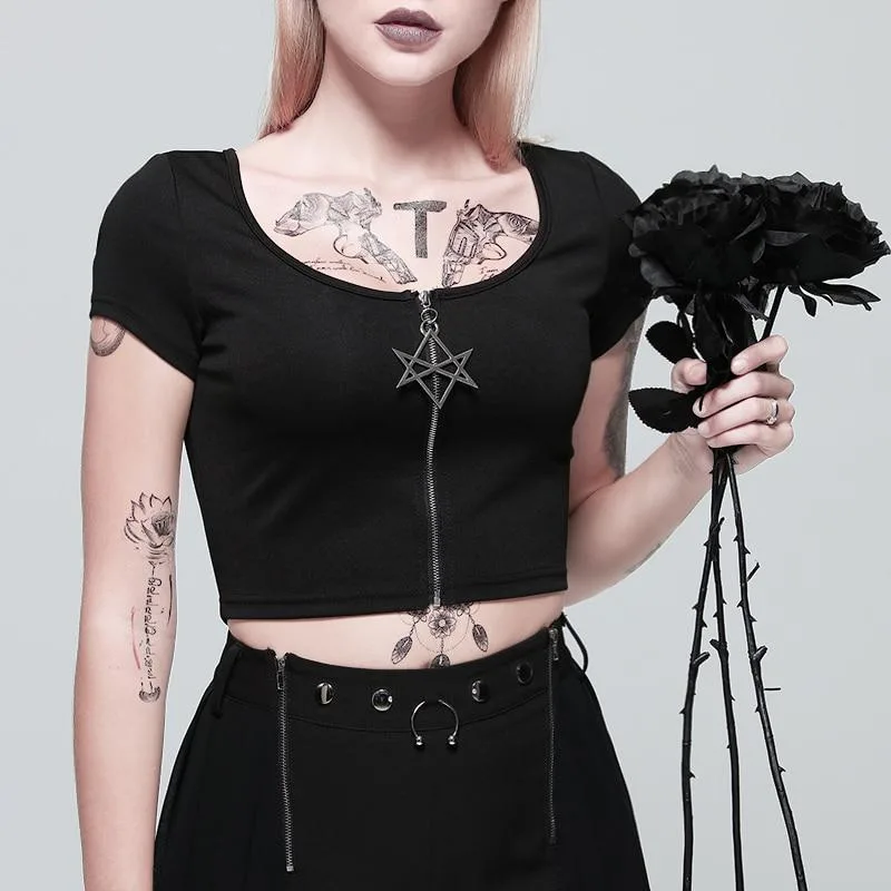 Kombinieren Sie dieses Gothic T Shirt Stern mit einem anderen Gothic T-Shirt für Damen oder einer schicken Gothic-Crop-Top Option aus unserer Kollektion für einen imposanten Look. Ergänzen Sie Ihren Stil mit unseren schwarzen Gothic-Shirts für Damen, um den ultimativen Gothic-Stil zu erreichen.