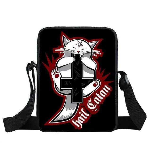 Entdecken Sie die Gothic Tasche Gegrüßet seist du Satan, ein Must-Have für alle Gothic- und Dark-Fashion-Liebhaber! Diese Umhängetasche aus strapazierfähigem Nylongewebe vereint Funktionalität und Stil und bietet ein dämonisch elegantes Design, das Ihren Look auf ein neues Level hebt. Perfekt für alle, die einen dunklen, rebellischen Look suchen – von Alltag bis Gothic-Events.