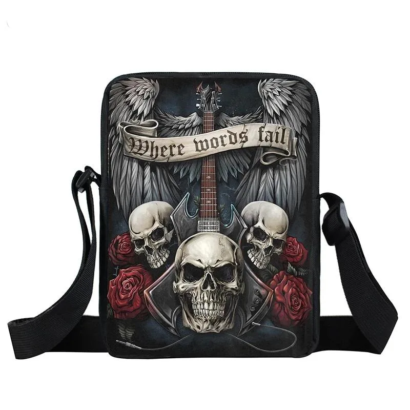 Warten Sie nicht länger! Ergänzen Sie Ihre Garderobe mit der Gothic Tasche Skull Rock, die Stil und Funktionalität auf unnachahmliche Weise vereint. Verleihen Sie Ihrem Outfit einen düsteren und dennoch raffinierten Look – ideal für jeden Anlass!