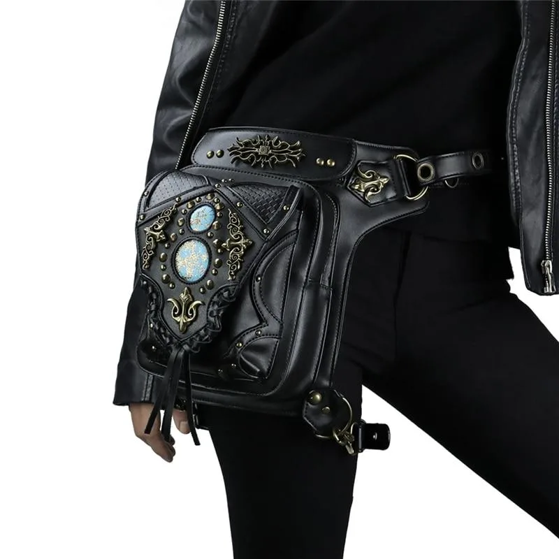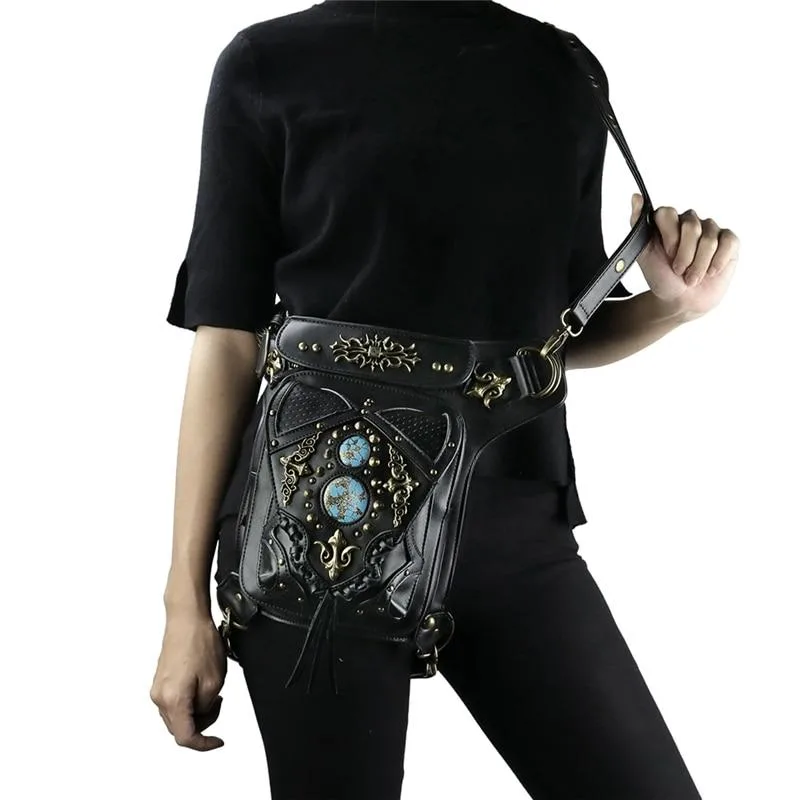 Entdecken Sie unsere einzigartige Gothic Tasche Vintage, das perfekte Accessoire für alle Liebhaber der Gothic-Mode. Diese vielseitige und stilvolle Tasche vereint einen makabren Look mit absoluter Funktionalität. Egal, ob Sie sie an der Hüfte, über der Schulter oder als kleinen Rucksack tragen – die Gothic Tasche Vintage wird Sie begeistern!