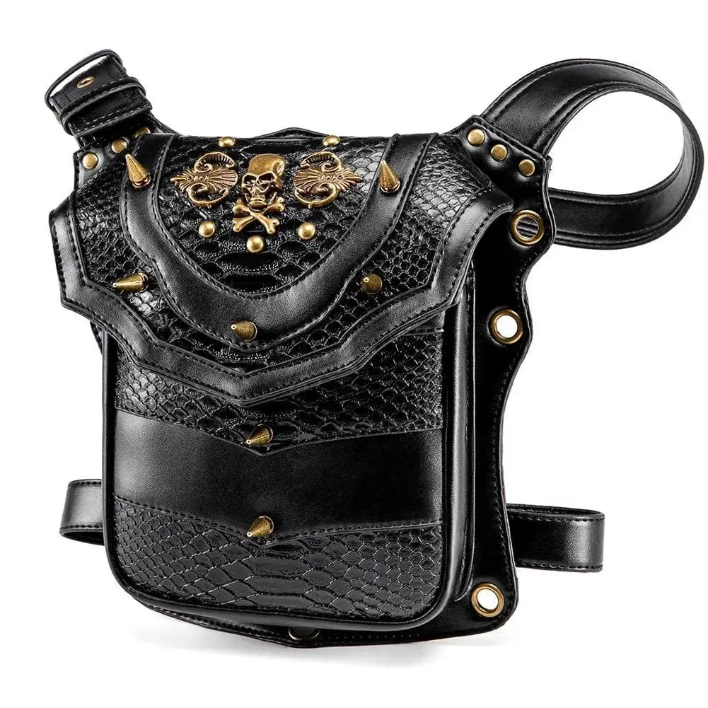 - Einzigartiges Design: Totenkopfdetails, Nieten und goldene Akzente verleihen der Tasche eine unverwechselbare Ästhetik.