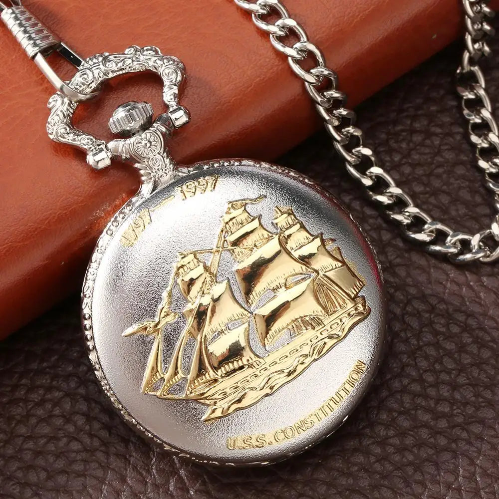 Gothic Taschenuhr USS Constitution mit Kette Quartz