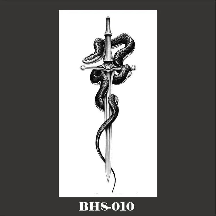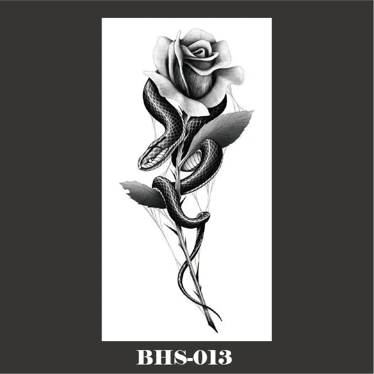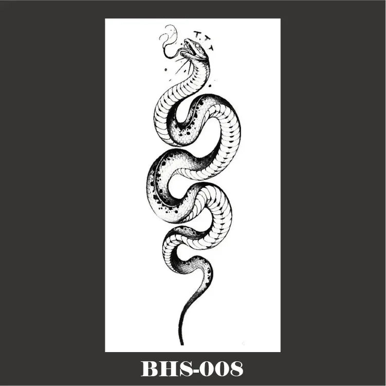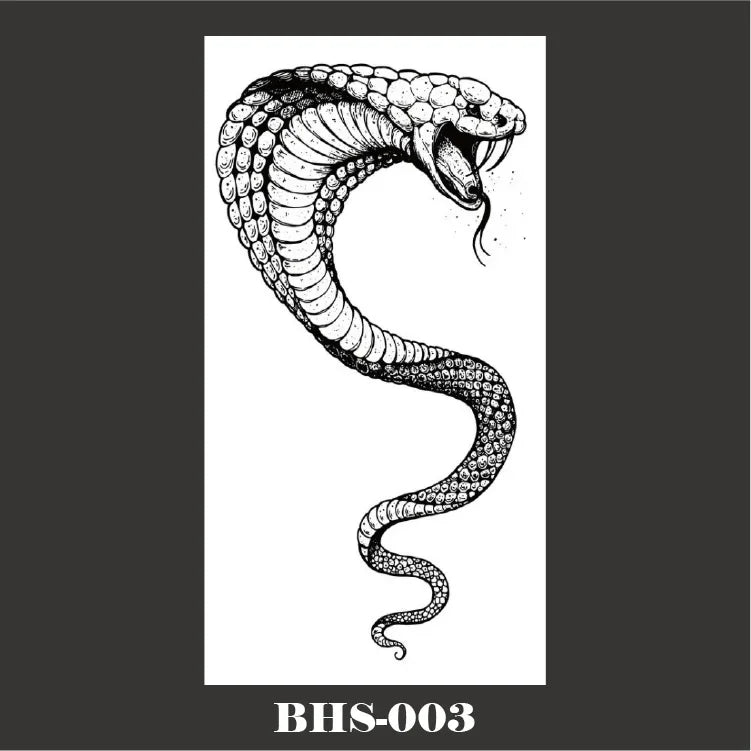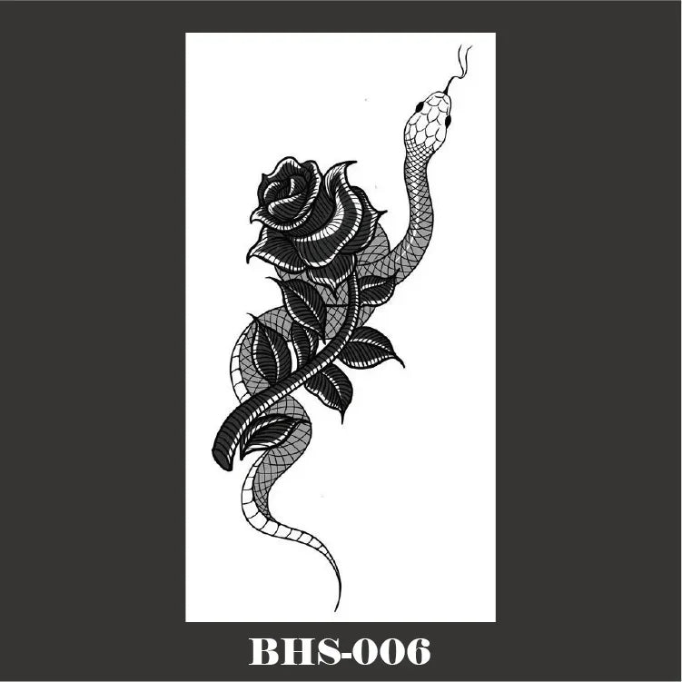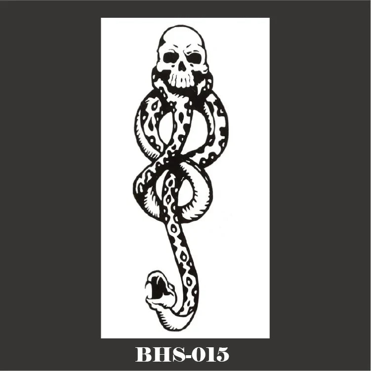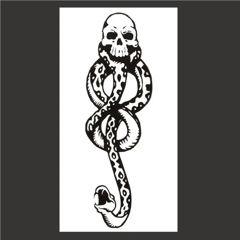 Kombinieren Sie das Gothic Temporäres Tattoo mit schwarzem Schlangen-Schädel mit einem Gothic Tattoo für Frauen oder anderen Gothic Tattoos, um einen noch stärkeren Eindruck zu hinterlassen. Ergänzen Sie Ihr Outfit mit Gothic Accessoires oder dunklen Gothic Stickern für ein vollständiges, thematisch abgestimmtes Erscheinungsbild.