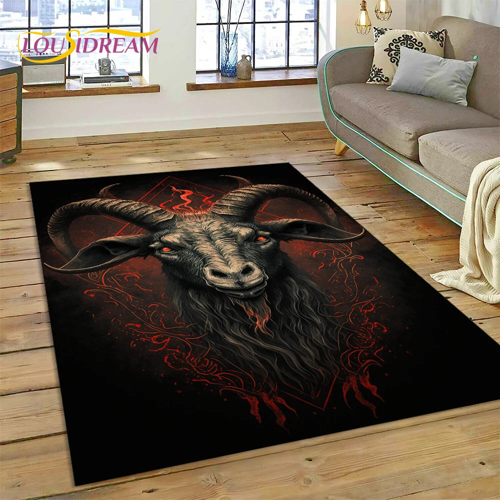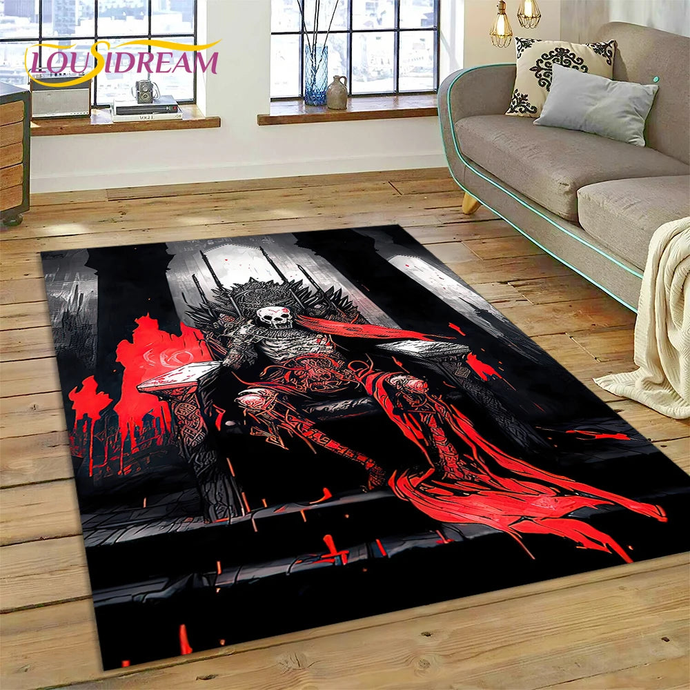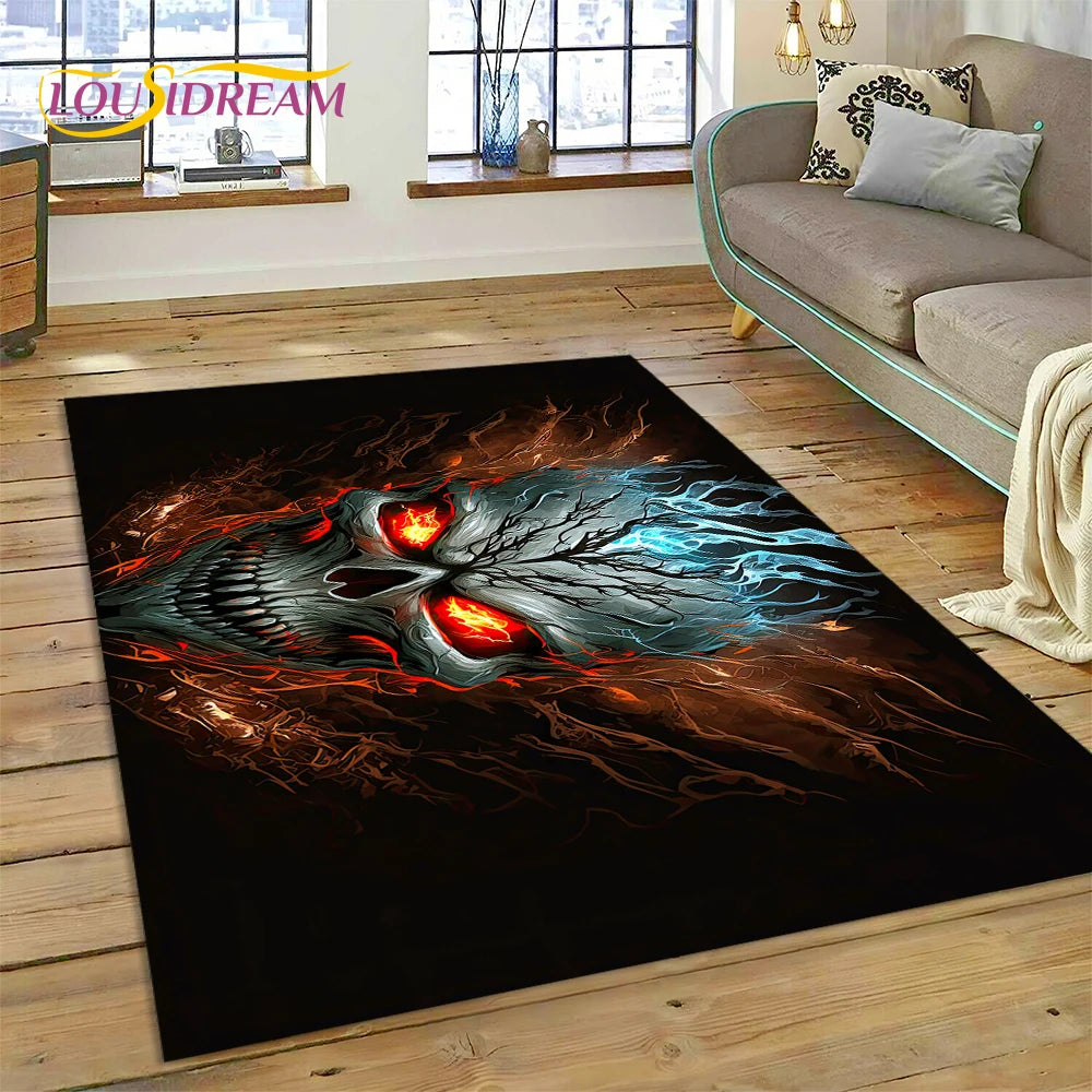Entdecke unseren gothic Horror Teppich mit Dämonen und Geistern – perfekte Deko für Wohnzimmer, Schlafzimmer oder Kinderzimmer-Spielbereiche.