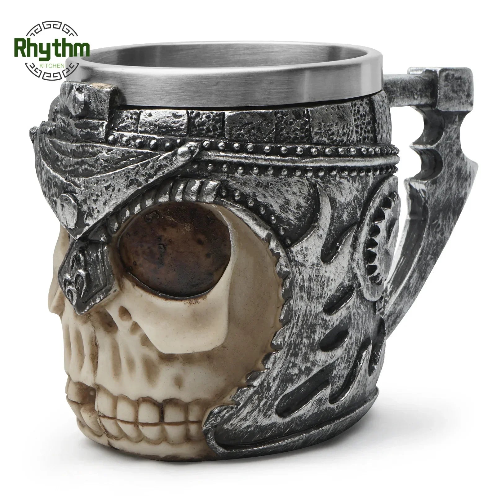 Gothic Totenkopf Becher aus Harz mit Edelstahl-Einsatz