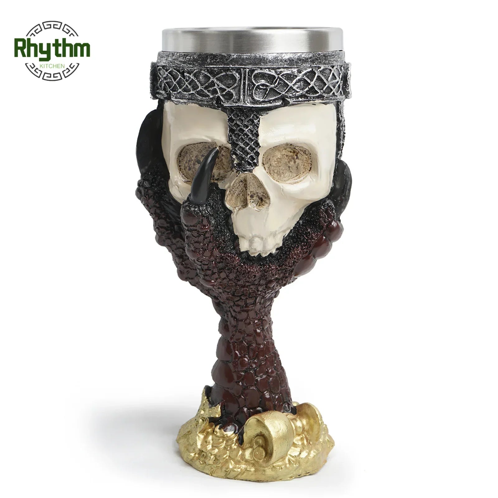 Gothic Totenkopf Bierkrug aus Harz und Edelstahl, 3D Design