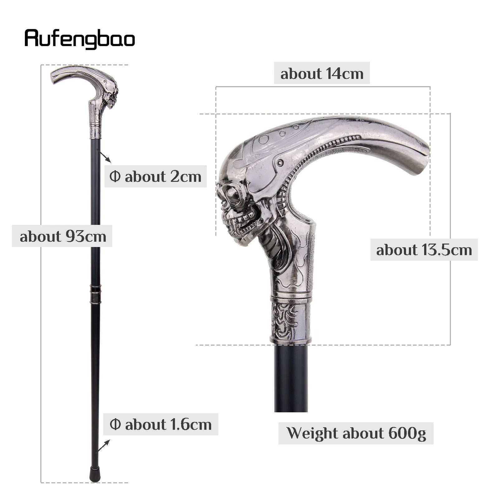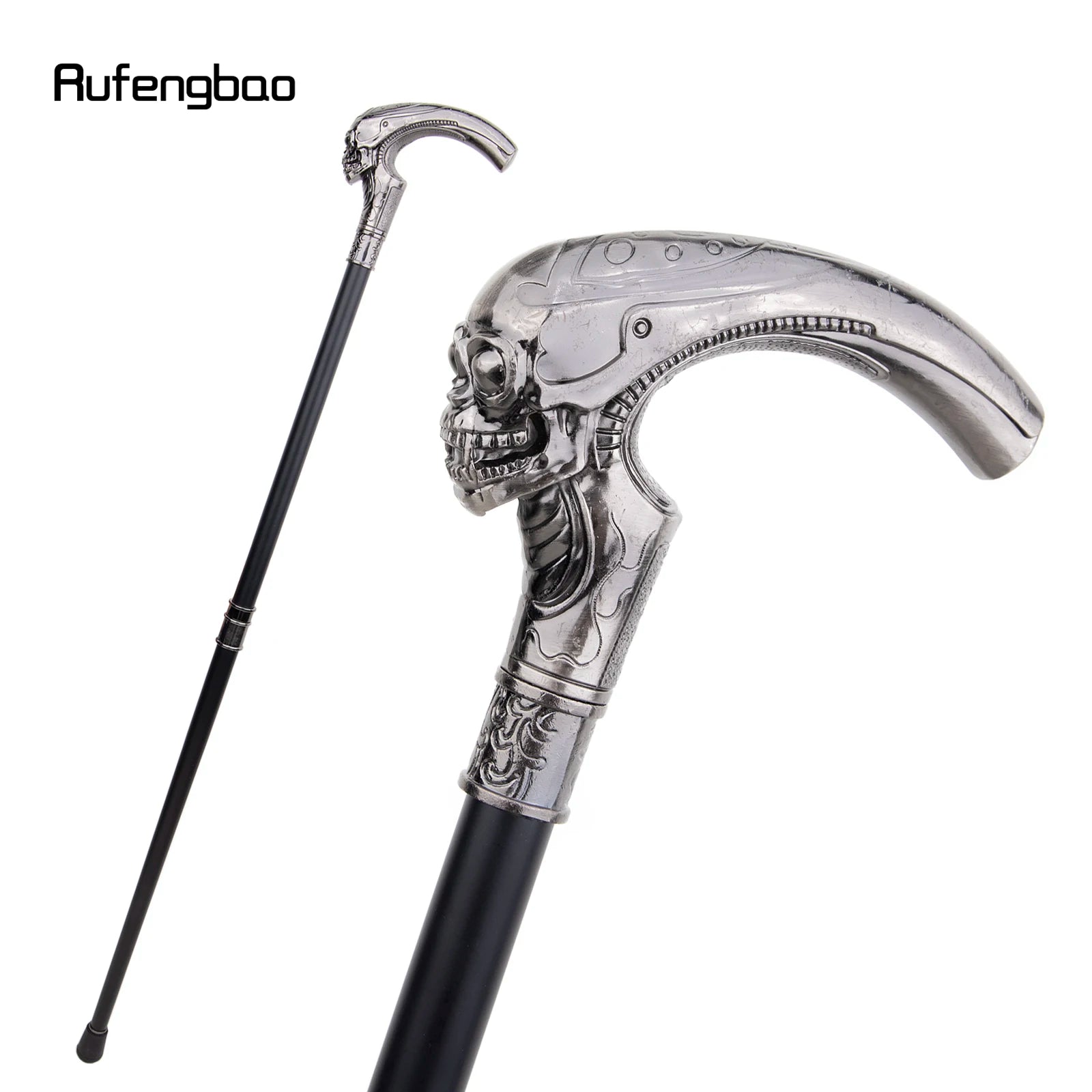 Eleganter Gothic-Gehstock mit Totenkopf, ideal für Halloween, Cosplay & Vintage-Partys. 93 cm langer modischer Spazierstock.
