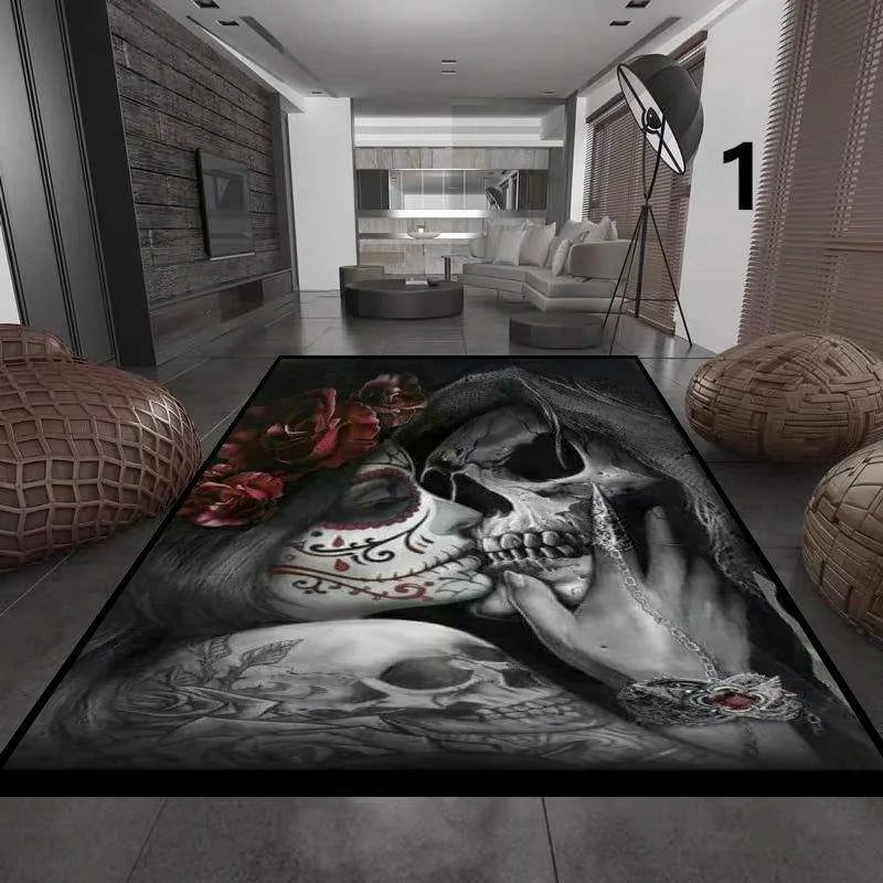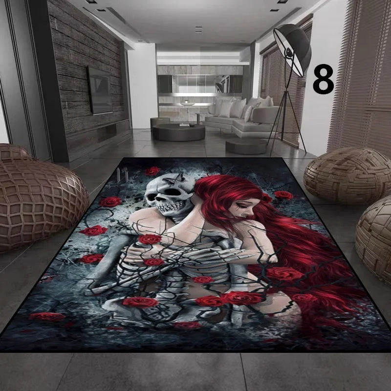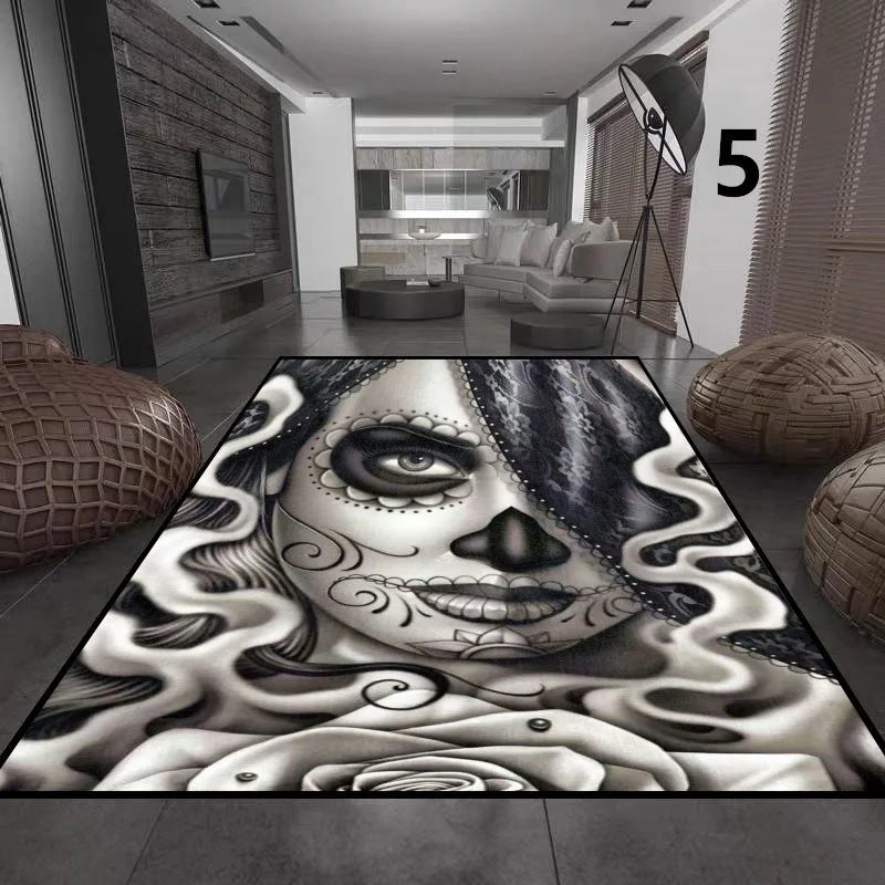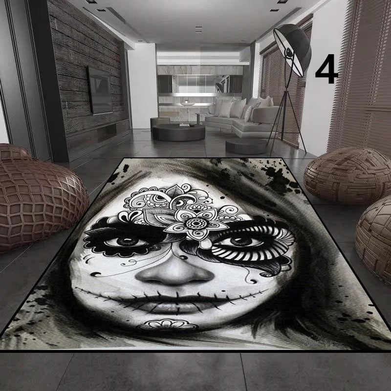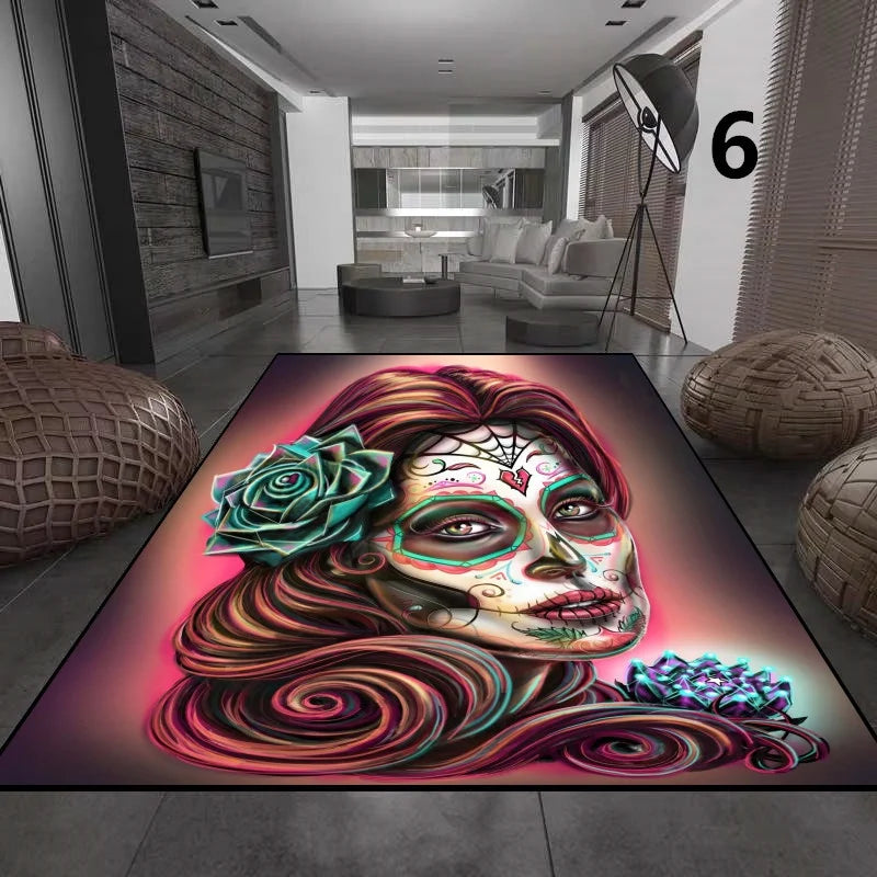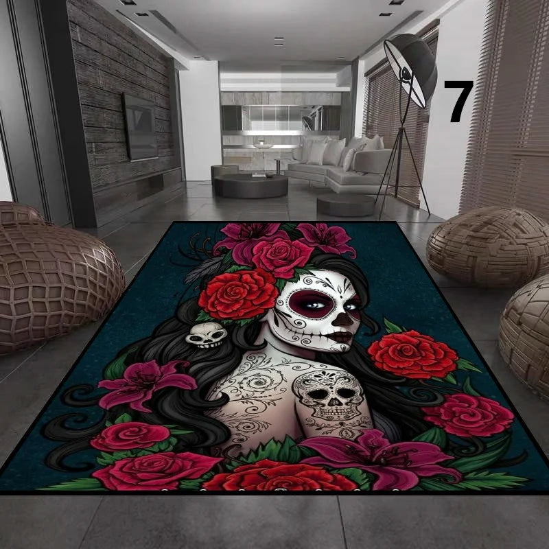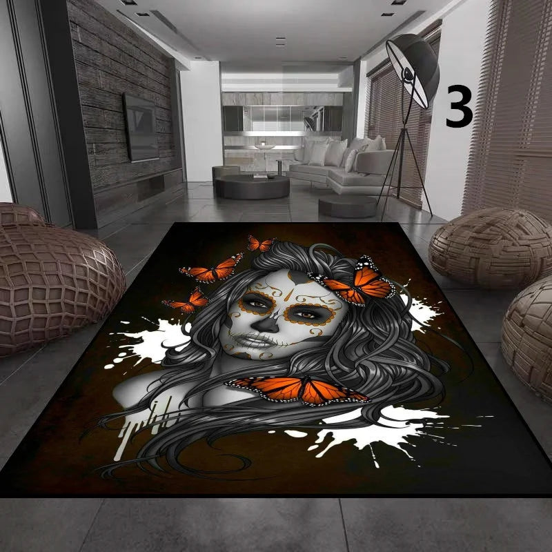 Gothic Totenkopf Mädchen Teppich für Wohnzimmer Deko