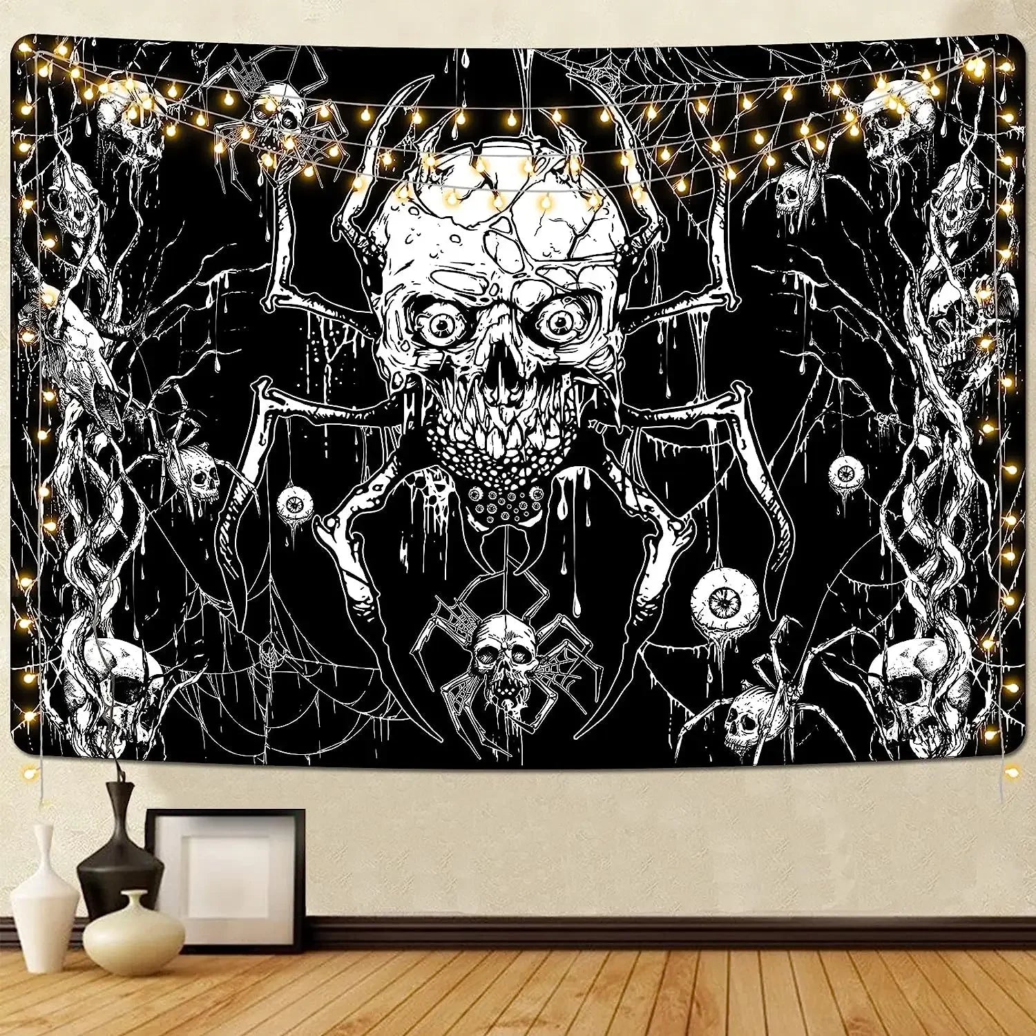 - Einzigartiges Design: Der kunstvolle Totenkopf in Kombination mit Boho-Elementen und okkulter Symbolik sorgt für eine tiefgründige Atmosphäre im Raum.