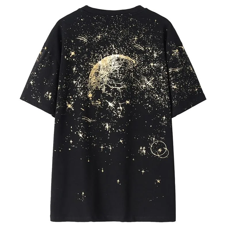 • Faszinierendes Design: Der schwarze Sternenstaub-Aufdruck zieht sich von den Ärmeln bis in den Rücken und sorgt für einen tiefen, galaktischen Look.