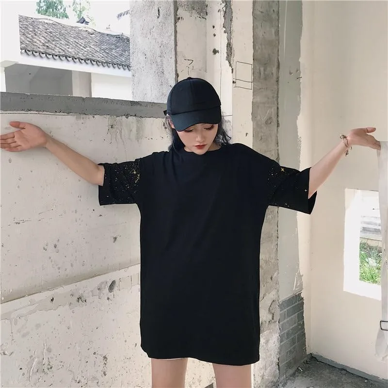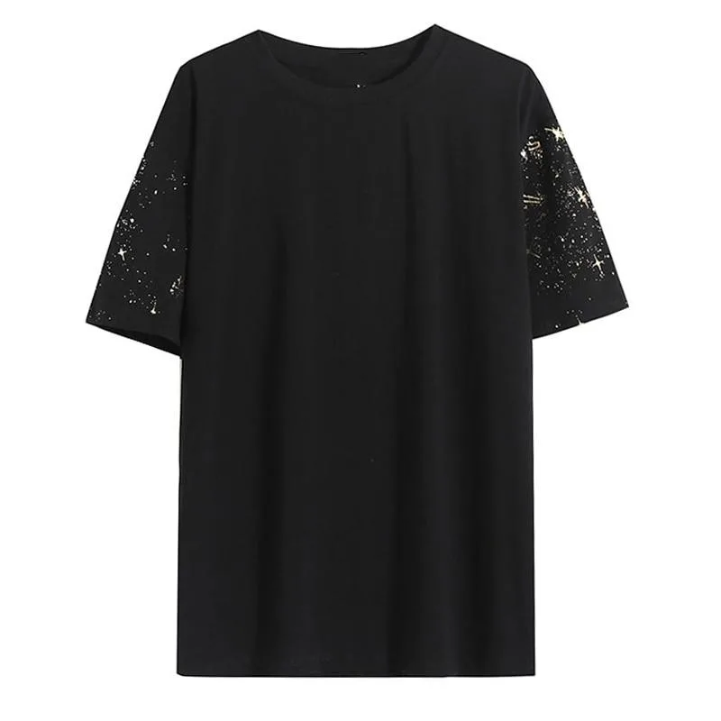 Das Gothic Übergroßes Stern T Shirt ist der Inbegriff von Komfort und Stil für Damen, die den mystischen Gothic-Look lieben. Mit seinem übergroßen Schnitt und dem faszinierenden Sternenstaub-Design verleiht es jedem Outfit eine unvergleichliche Note. Hergestellt aus hochwertiger Mesh-Baumwolle, bietet dieses Gothic T-Shirt außergewöhnlichen Tragekomfort und ist gleichzeitig ein echtes Statement-Piece für Ihren Alltag.