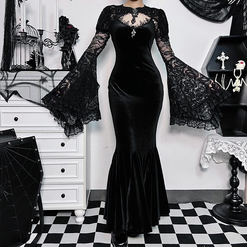 - Design: Spitze mit Trompetenärmeln für einen mystischen Look
