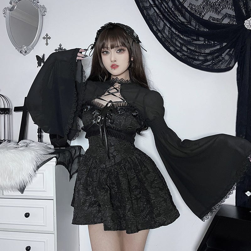 Verpassen Sie nicht, Ihren Stil mit diesem Gothic-Umhang mit ausgestellten Ärmeln und Riemchen für Damen zu perfektionieren. Bestellen Sie jetzt und runden Sie Ihr Gothic-Outfit perfekt ab!