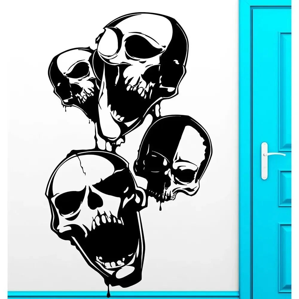 Gothic Vinyl Wandtattoo Totenkopf Deko für Jugendzimmer