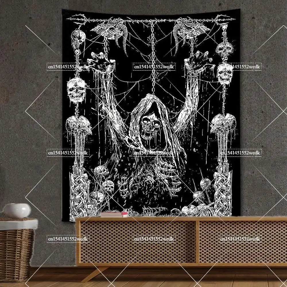Entdecke unser gothic Schädel-Wandteppich mit Teufel-Design – perfekte düstere Dekoration für dein Schlafzimmer im Gothic-Stil!