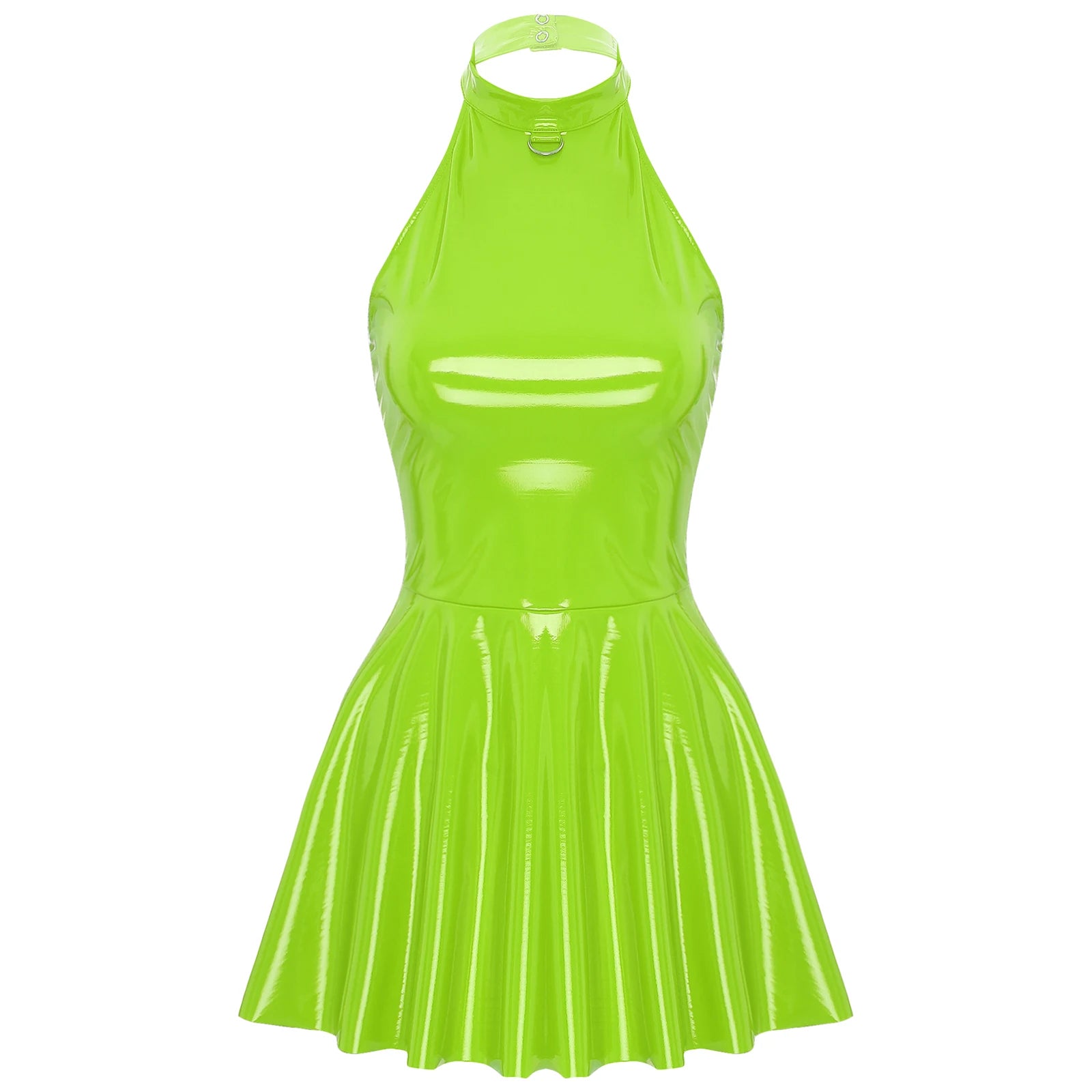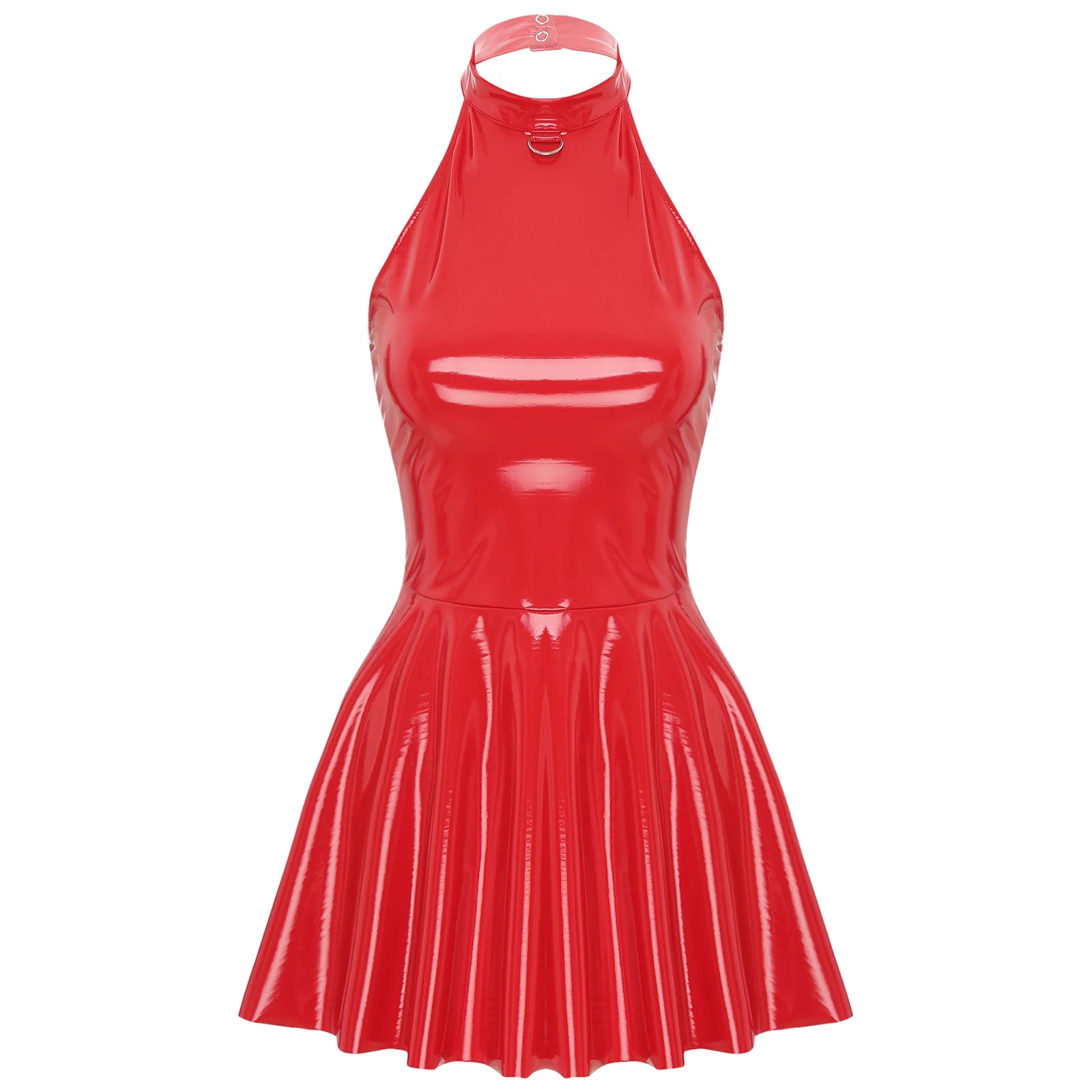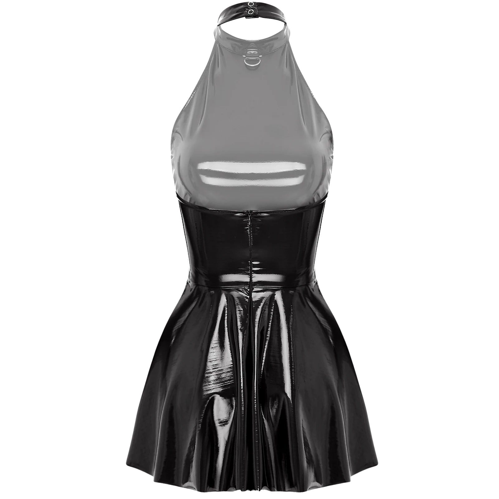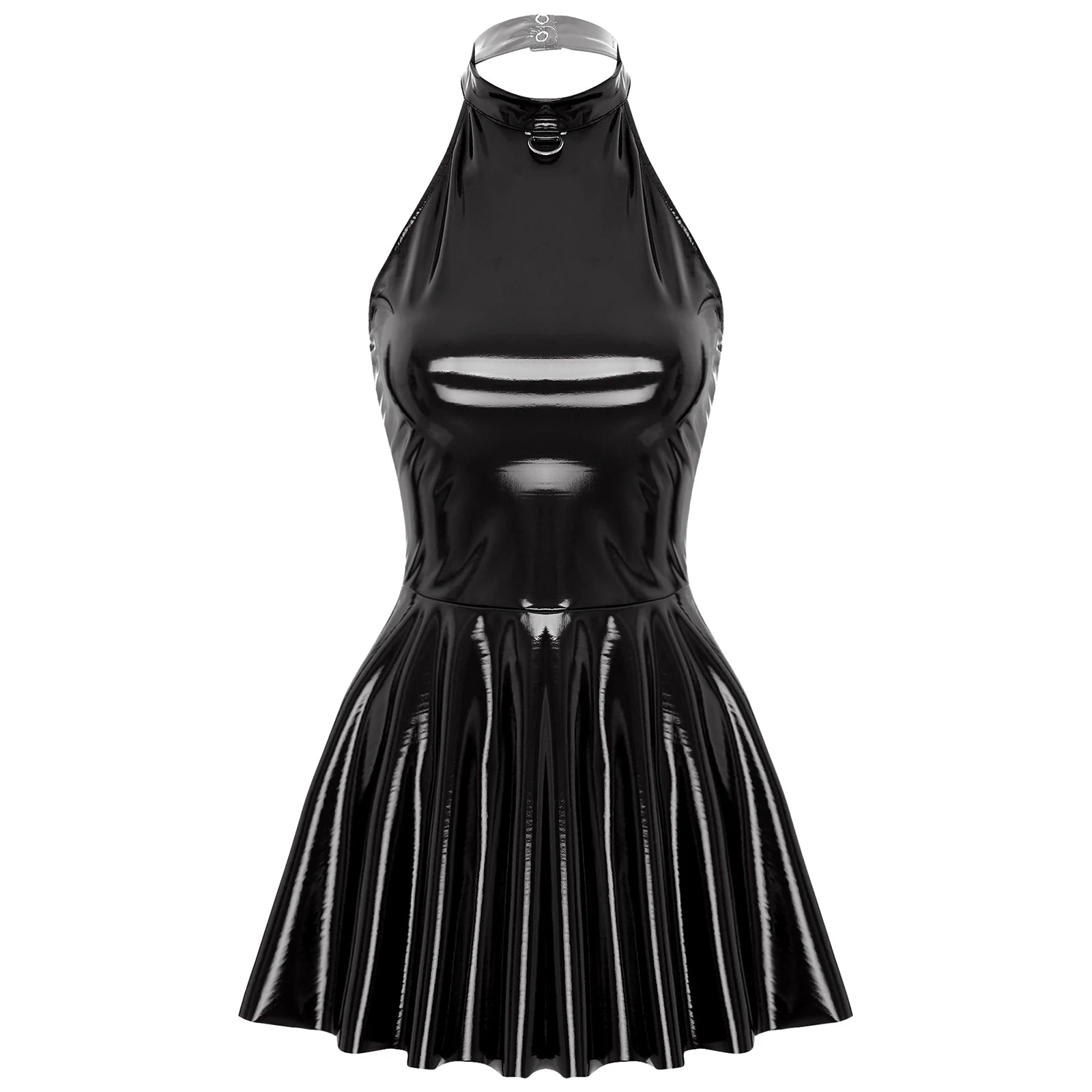 Gothic Wetlook Minikleid aus Lackleder mit O-Ring