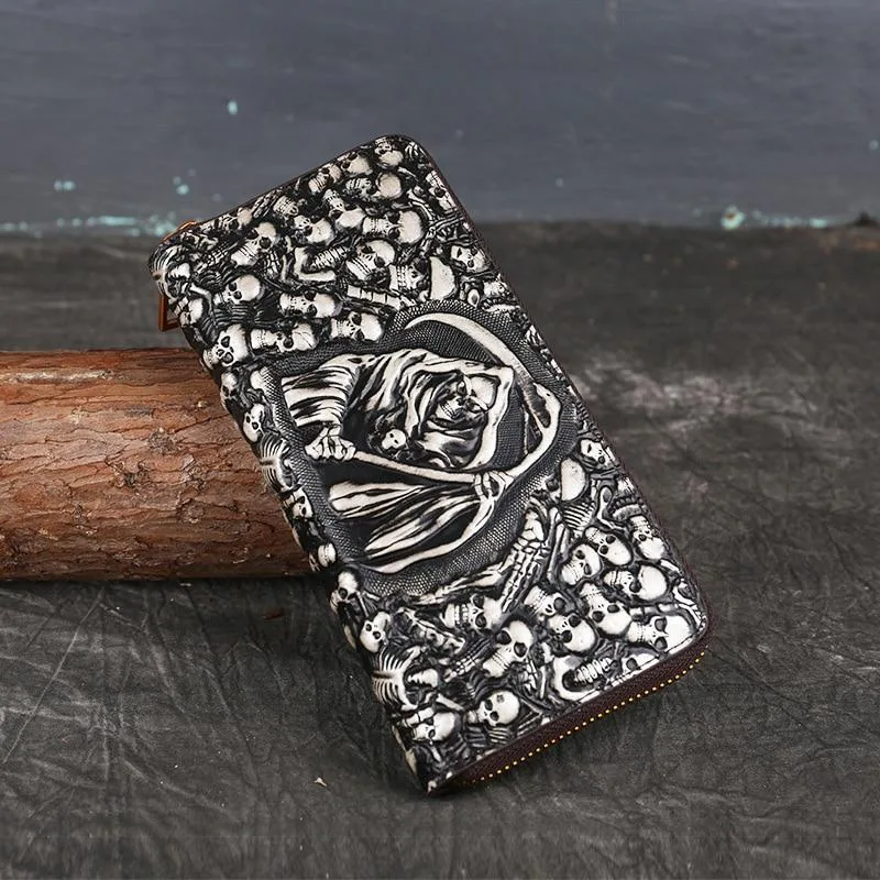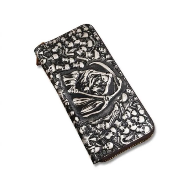 - Einzigartiges Design: Der ikonische Sensenmann und die Totenköpfe machen diese Geldbörse zu einem außergewöhnlichen Gothic-Accessoire.