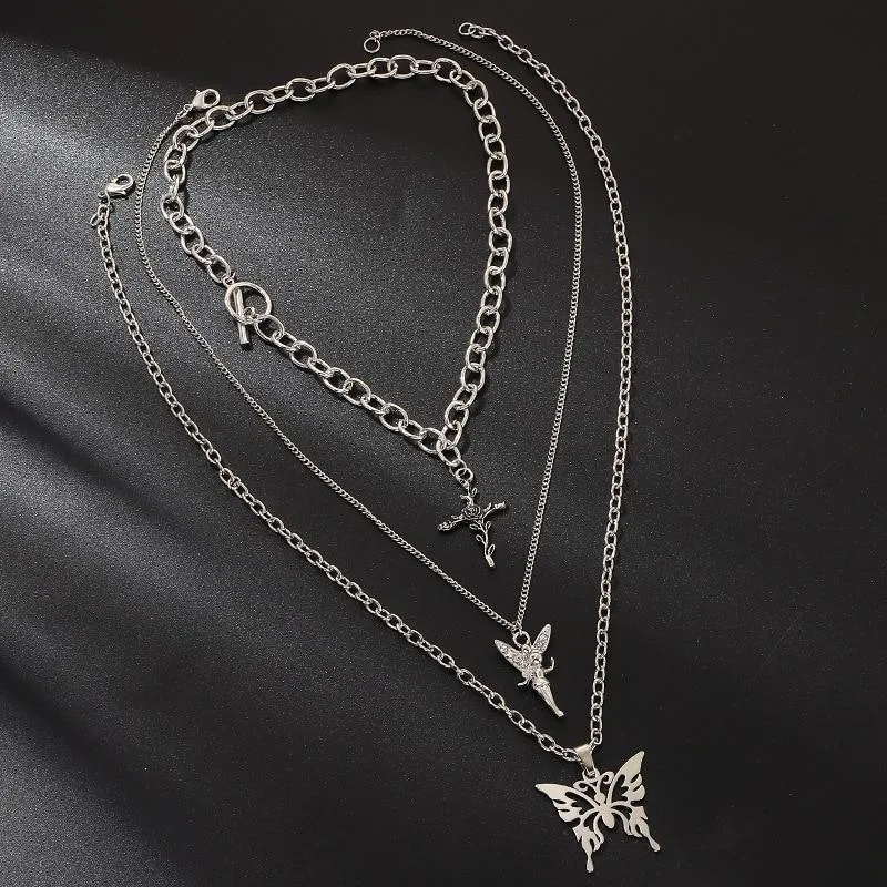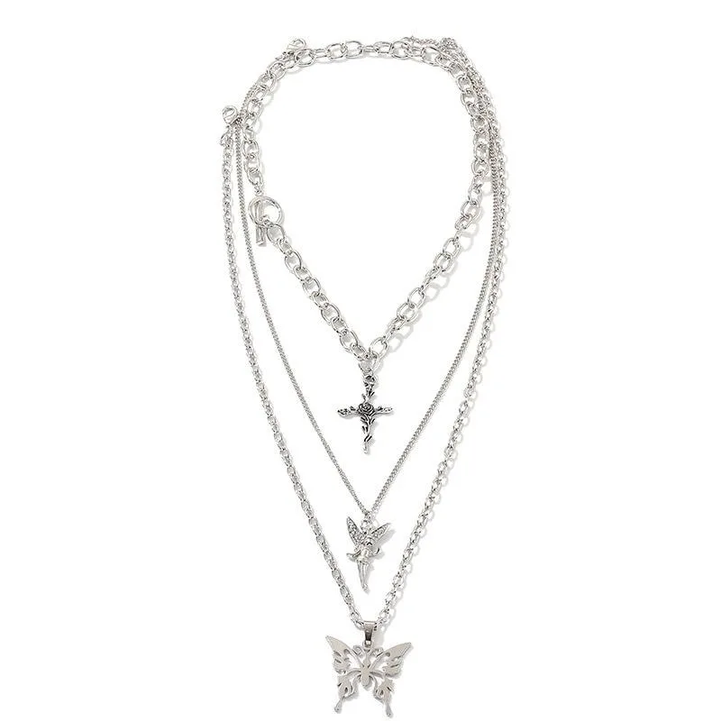 Erleben Sie die Magie der Gotische Gestufte Halsketten, ein beeindruckendes Accessoire für Liebhaber des gotischen Stils. Hergestellt aus hochwertiger Zinklegierung, ist diese Halskette das perfekte Zusammenspiel von Mystik und Eleganz. Dank ihres einzigartigen Schichtdesigns und der stilvollen Anhänger in Kreuz- und Schmetterlingsform wird sie sicher alle Blicke auf sich ziehen.