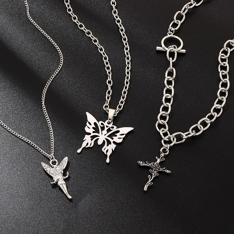 • Einzigartige Anhänger: Kreuz- und Schmetterlingsmotive ergänzen sich perfekt und setzen ein starkes gothisches Statement.