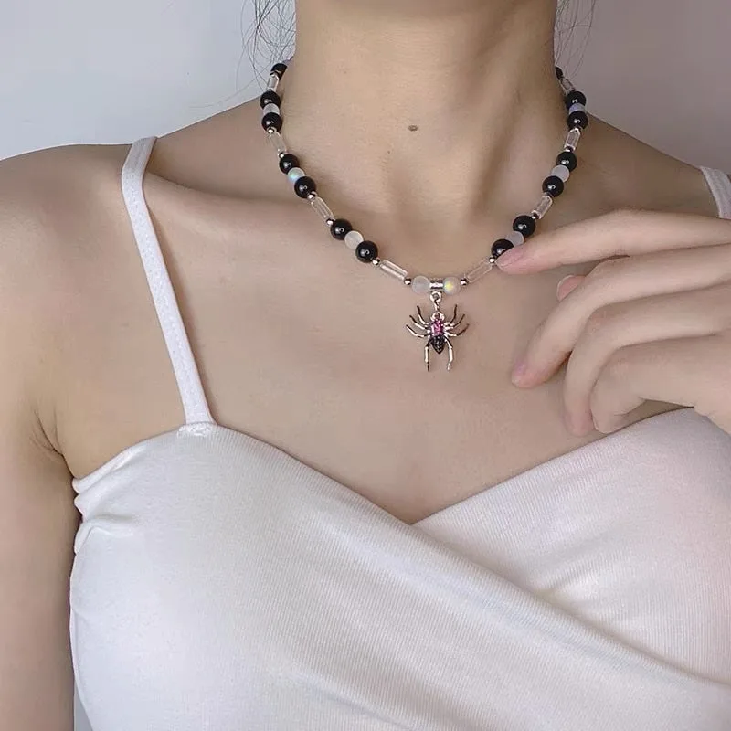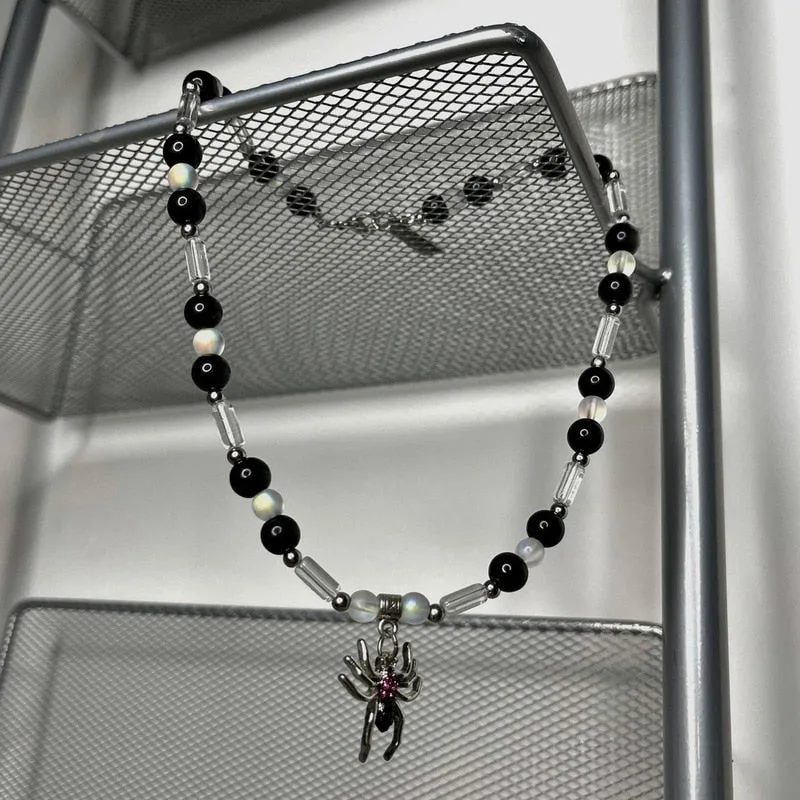 - Design: Gotisches Design mit detailliertem Spinnenanhänger
