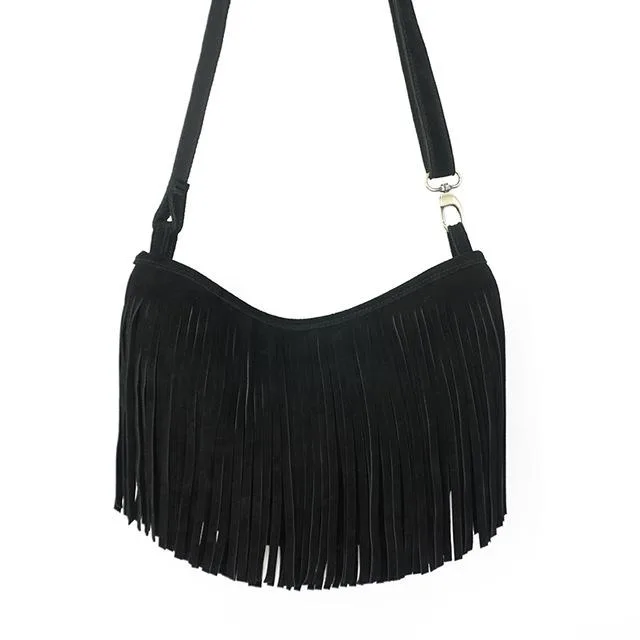 - Cowboy-inspiriertes Design: Die Fransen-Details und die verstellbaren Schulterriemen machen sie sowohl modisch als auch praktisch.