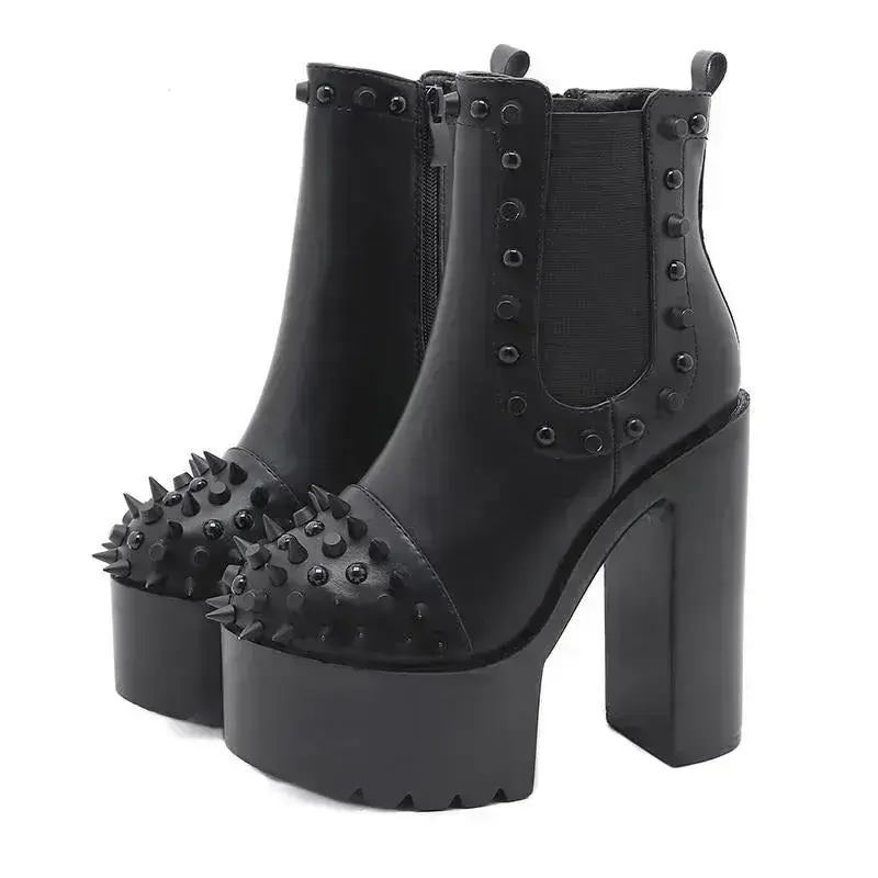 - Auffälliges Design: Verziert mit Nieten und Reißverschluss, geben diese High Heels jedem Outfit einen coolen Gothic-Punk-Twist.