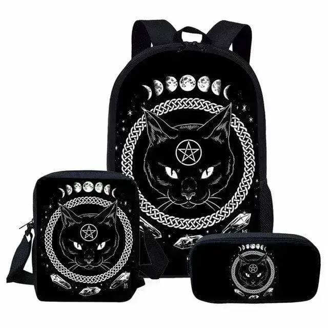 Entdecken Sie die Gotische Katzentasche, das ultimative Accessoire für Gothic-Liebhaber und Katzenfans. Dieses Set, bestehend aus einem Rucksack, einer Umhängetasche und einer Clutch, kombiniert stilvolle Funktionalität mit einem eleganten Gothic-Look. Egal, ob Sie auf einen Stadtbummel gehen, zur Schule oder bei einem Outdoor-Abenteuer – dieses Set verleiht Ihrem Outfit den perfekten Gothic-Touch.