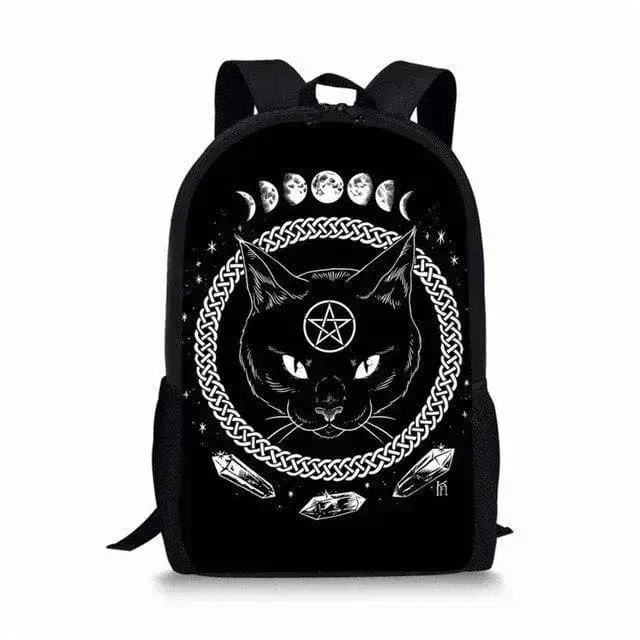 - Unschlagbarer Stil: Verziert mit einer einzigartigen Katzenabbildung, einem Pentagramm und dem Mondzyklus, die einen majestätischen Kontrast zur schwarzen Grundfarbe bilden.
