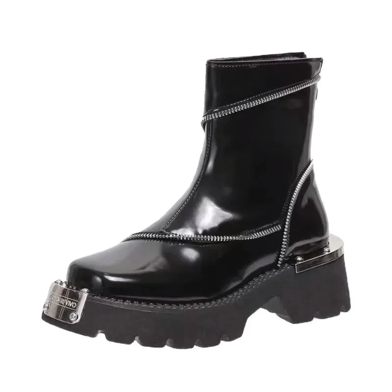 Entdecken Sie unsere Gotische Reißverschlussschuhe, die perfekte Wahl für Liebhaber der düsteren Ästhetik und modernen Eleganz. Mit einem raffinierten Design, das metallische Details mit praktischen Elementen wie einem Reißverschluss kombiniert, setzen diese Schuhe Akzente und heben Ihren Stil auf ein neues Level. Perfekt für jeden, der aus der Masse hervorstechen möchte!