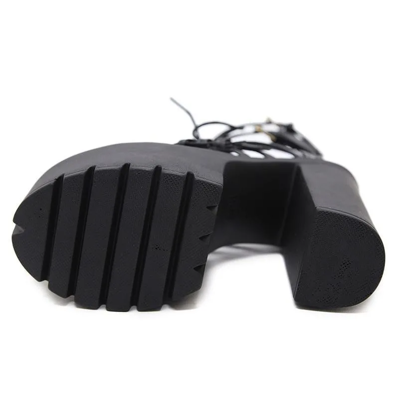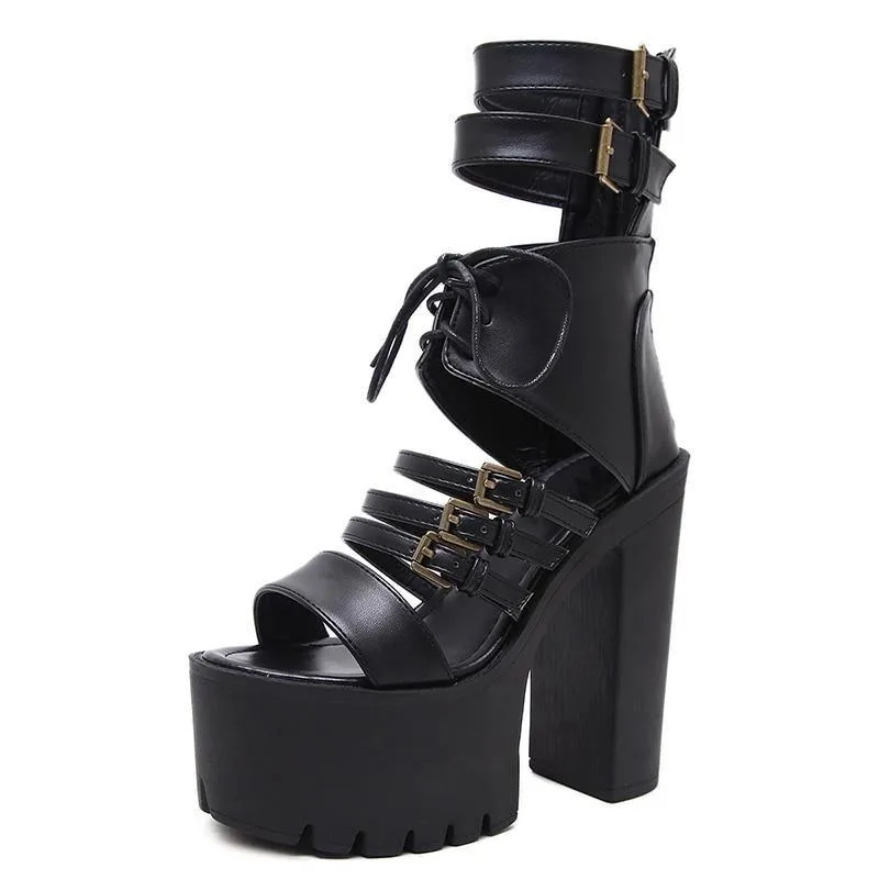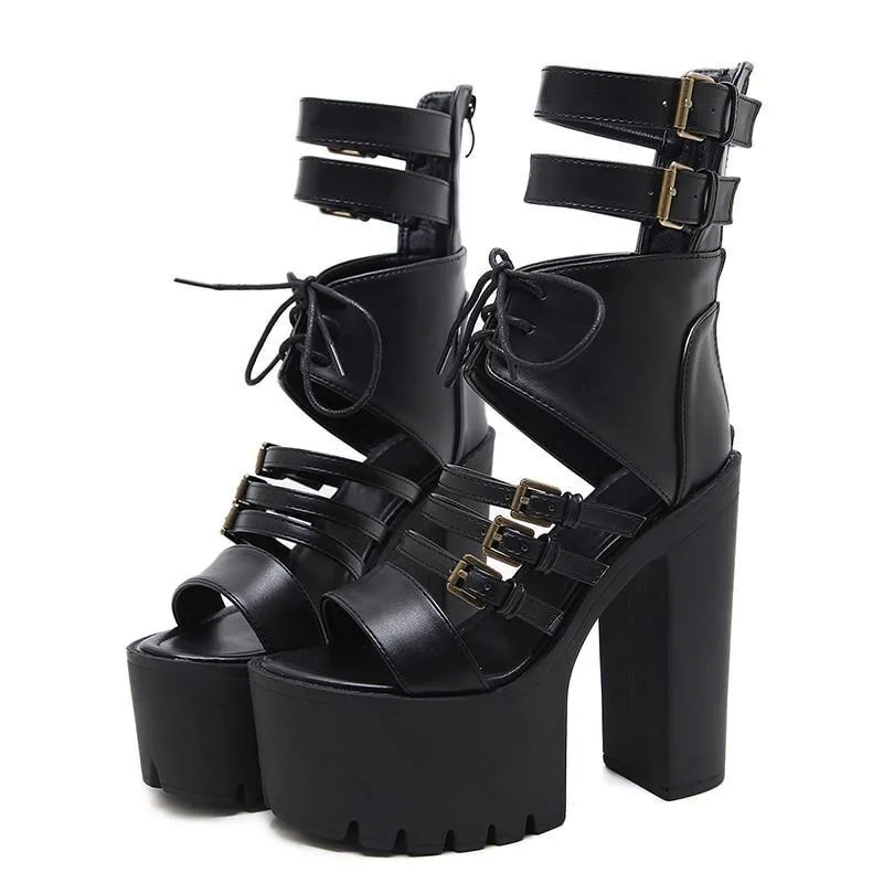 Sichern Sie sich diese außergewöhnliche Gotische Sandale mit Absatz Hoch und heben Sie sich von der Masse ab. Perfekt für besondere Anlässe und jeden, der seinen individuellen Stil unterstreichen möchte!
