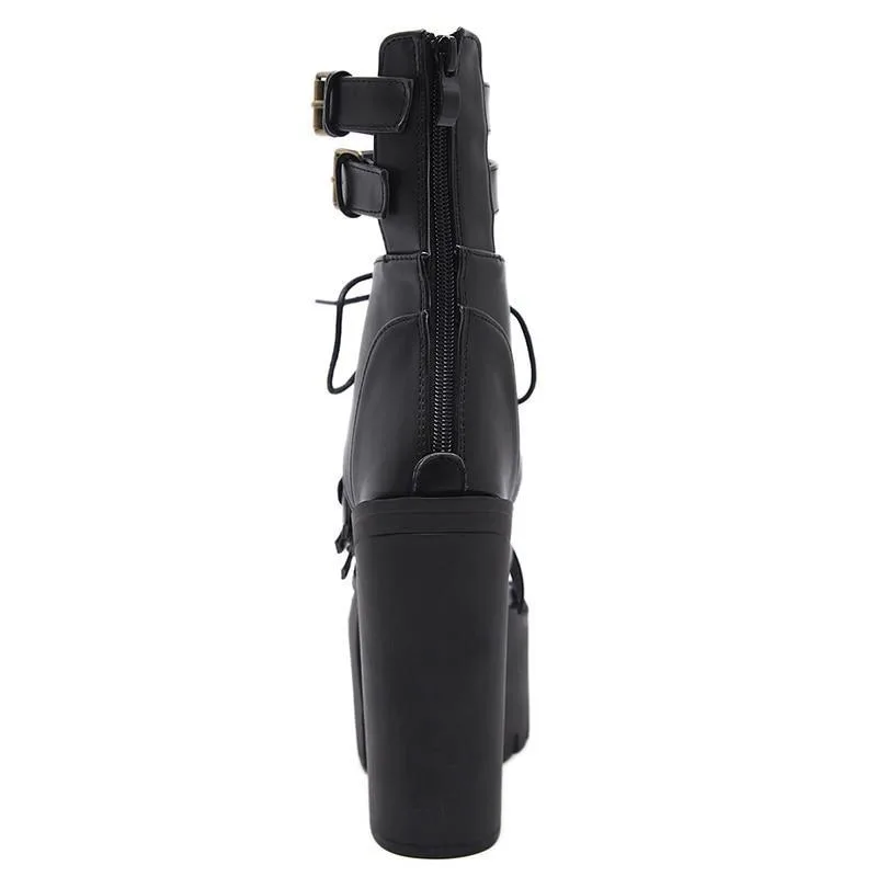 Entdecken Sie unsere stilvolle Gotische Sandale mit Absatz Hoch, die perfekte Wahl für Liebhaber von gothischem und punkigem Stil. Mit einer Höhe von ca. 14,5 cm und einer modischen Plateauhöhe von 6,5 cm, verbindet diese Sandale kompromisslosen Komfort mit einem ausgefallenen Design. Ideal für besondere Anlässe wie Partys, Club-Abende oder ungezwungene Ausgänge – dieses Modell ist ein echter Blickfang.