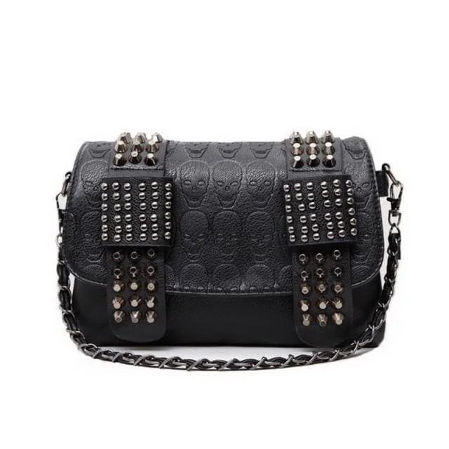 • Unvergleichliches Design: Die geprägten Totenköpfe und silbernen Nieten verleihen der Tasche einen unverwechselbaren Gothic-Rock-Stil.