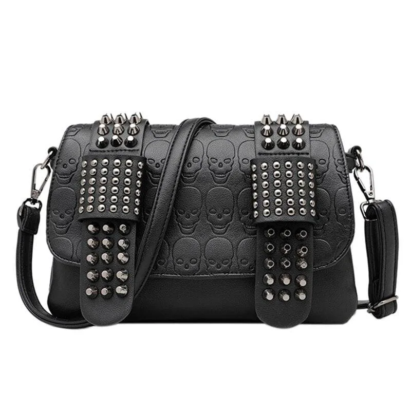 - Perfektes Design: Verziert mit Totenkopf-Motiven und silbernen Nieten spiegelt diese Tasche den Gothic-Punk-Spirit wider.
