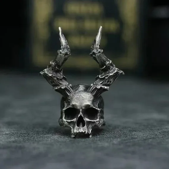 Entdecken Sie den gotischen gehörnten Totenkopfring – ein einzigartiges Schmuckstück, das mystischen Stil und düsteren Charme perfekt vereint.